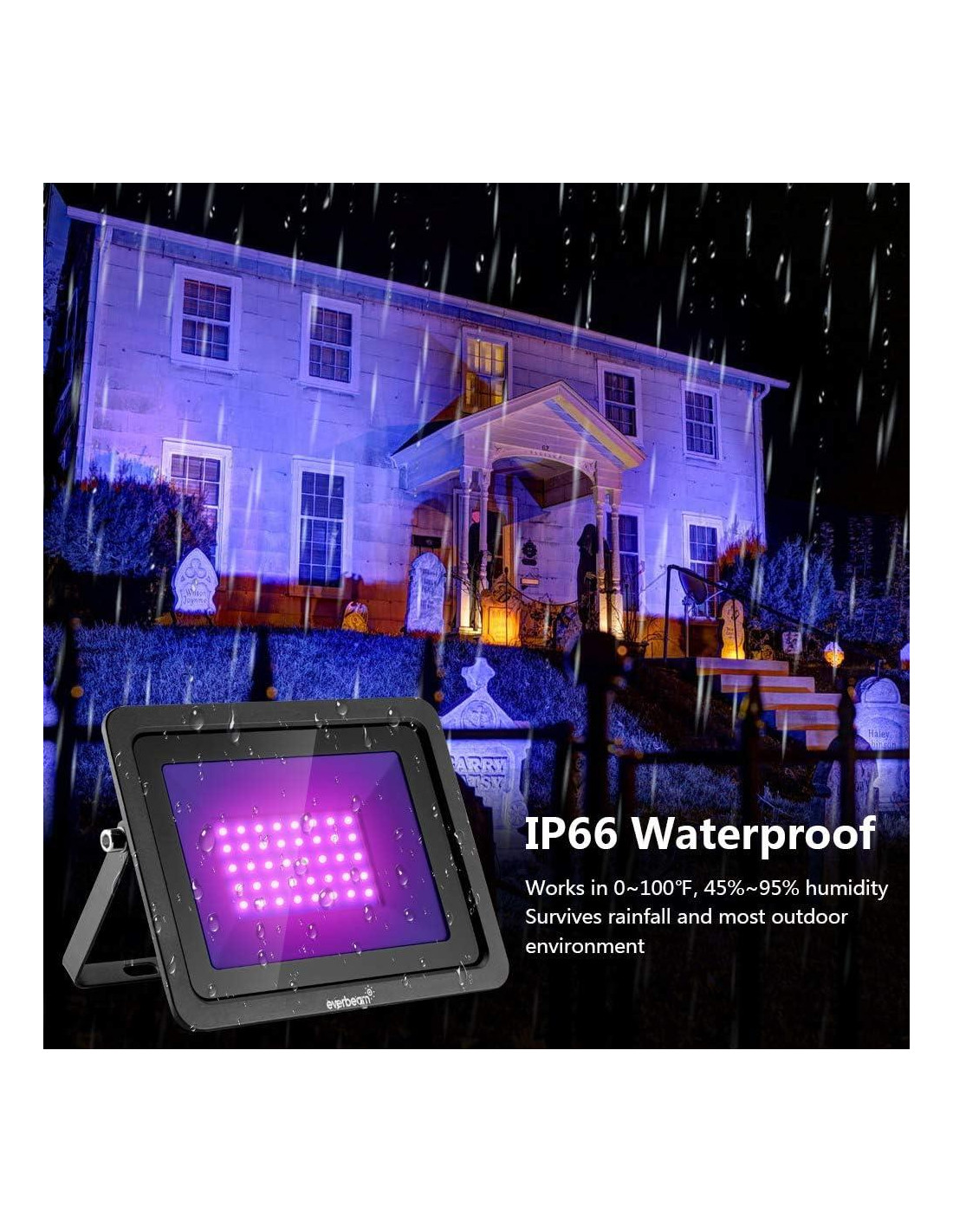 - RESISTENTE AL AGUA Y LA HUMEDAD - Esta luz LED UV tiene una calificación de impermeabilidad IP66, funcionando en un entorno de 0-100F (17,78 a 37,78C) y 45%~95% de humedad, lo que significa que puedes usarla de manera segura al aire libre incluso en una noche húmeda.