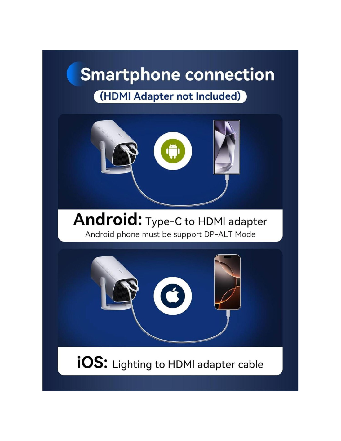 - Conectar y Usar en Cualquier Lugar: Convierte cualquier espacio en un centro de entretenimiento con las opciones de conectividad versátiles del proyector de películas: puertos HDMI/USB/Audio para compatibilidad universal. Se conecta sin problemas a teléfonos, unidades USB, laptops, dispositivos de streaming y más. Nota: El puerto USB no soporta la duplicación de teléfonos y computadoras.