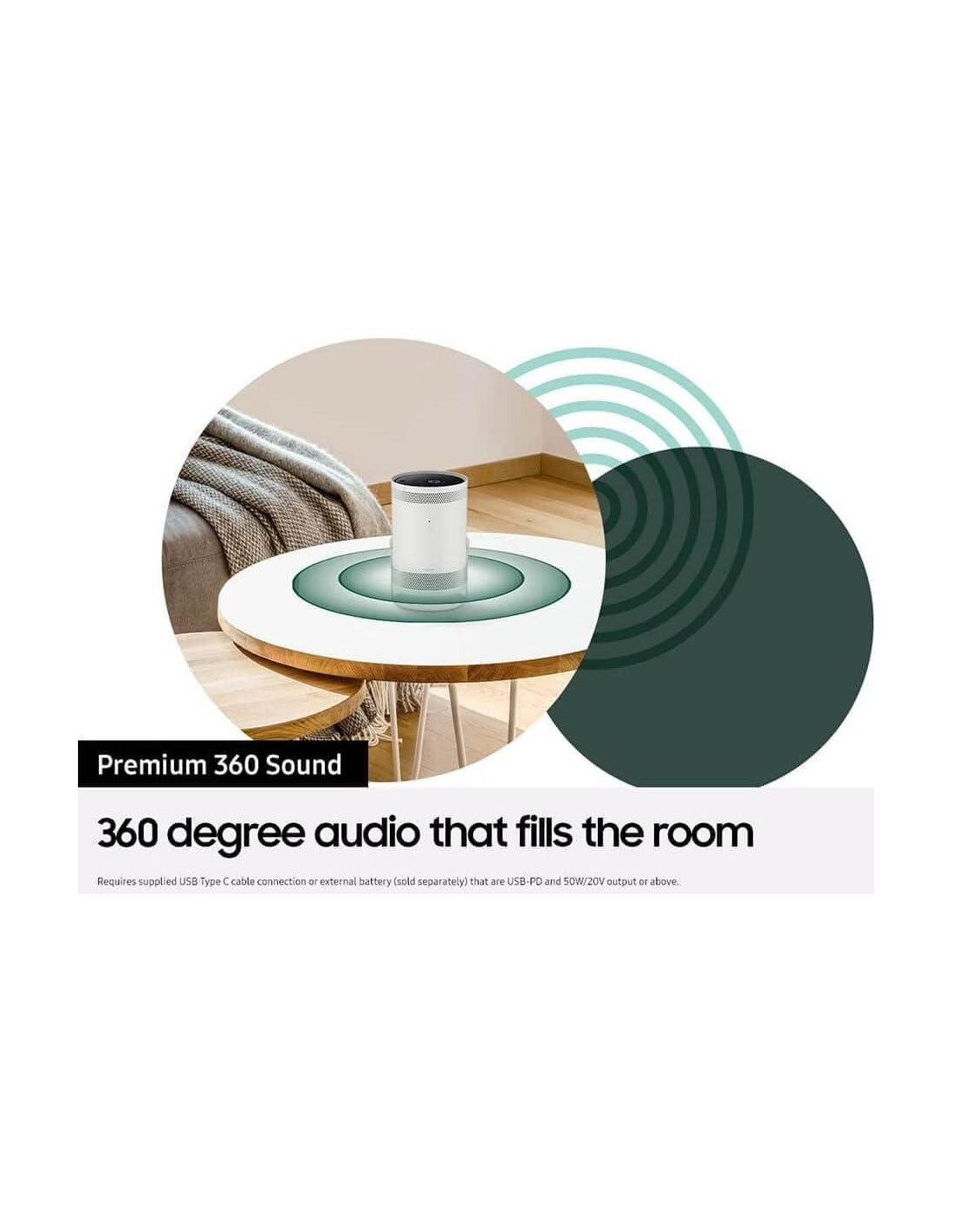 - SONIDO PREMIUM 360: Escucha el audio de 360 grados que llena la habitación desde este pequeño pero poderoso cine inteligente; Te verás llevado por el sonido de alta calidad que resuena desde el altavoz y los potenciadores de graves