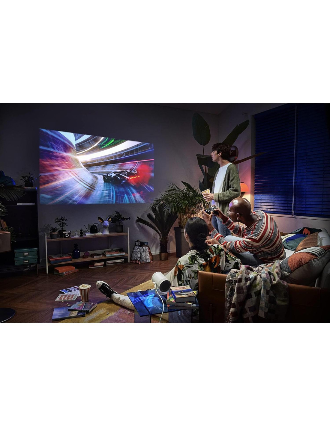 Lleva la experiencia de pantalla grande contigo con The Freestyle. Este cine inteligente para llevar se mueve a donde está la acción. Simplemente apunta y reproduce en la pared, el techo o incluso tu mesa. The Freestyle configura automáticamente tu mejor experiencia de imagen, ajustando el enfoque, la corrección trapezoidal y el nivelado, a la medida de imagen que desees. Estarás listo para transmitir tus programas utilizando las capacidades de Smart TV, revisar tu feed social, jugar y escuchar todo con un rico sonido 360. Reúne a tus amigos, tu contenido está yendo a lugares. Mira en Alta Definición Completa con The Freestyle, 2 veces más nítido que otros proyectores personales con HD. Con aproximadamente 8.3 millones de píxeles y una resolución de 1080X1920, puedes sentarte más cerca que con HD, haciendo que todo sea más grande, nítido y claro.***** SmartThings ofrece una experiencia de color personalizada para tu espacio con The Freestyle. Ya sea que estés proyectando en una pared de ladrillo o en una mesa de madera, la aplicación calibra automáticamente la temperatura de color y el brillo de tu imagen para la superficie en la que miras.***** *Incluye Samsung SmartHub; contenido externo desde el puerto Micro HDMI y dispositivos compatibles con AirPlay 2, SmartThings o Tap View. Los Asistentes de Voz y Aplicaciones están sujetos a cambios. Algunas funciones requieren conexión a internet a través de Wi-Fi o desde un dispositivo móvil. **Requiere conexión de cable USB Tipo C suministrado o batería externa (se vende por separado) que sean USB-PD y salida de 50W/20V o superior. ***Tamaños de pantalla óptimos de 30" - 100" medidos diagonalmente; basado en la distancia de The Freestyle a la superficie. ****Los Asistentes de Voz y Aplicaciones están sujetos a cambios. Algunas funciones requieren conexión a internet a través de Wifi o desde un dispositivo móvil. *****El brillo varía según la luz circundante.