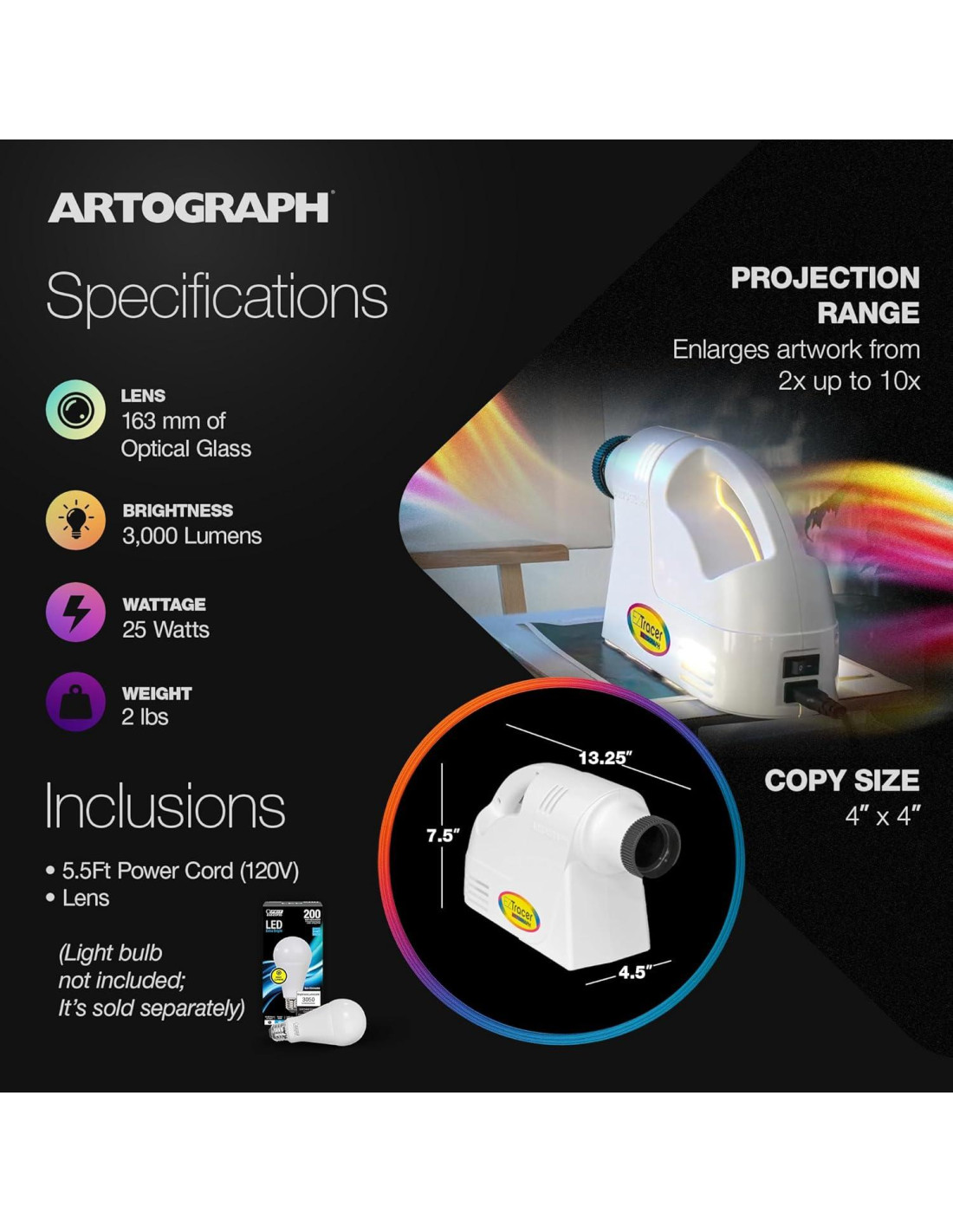- Área de Copia: 10.16 cm x 10.16 cm. Si trabaja con imágenes más grandes, trabaje en secciones. Amplía obras de arte planas de 2 a 10 veces el tamaño original en cualquier pared, lienzo u otra superficie vertical. Las dimensiones generales son 11.43 cm W x 33.66 cm D x 19.05 cm H.
