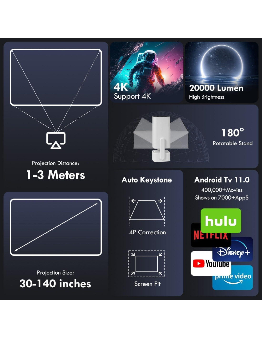 - [Función de Ajuste Inteligente] Con enfoque electrónico y corrección automática de keystone vertical, puedes ajustar fácilmente la imagen para asegurar un efecto de proyección perfecto, satisfaciendo diversas necesidades de proyección.