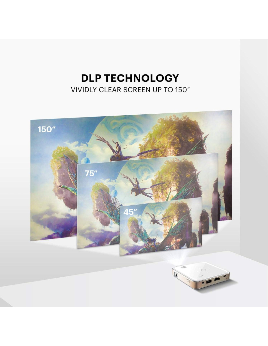 - PROYECCIÓN IMPRESIONANTE 16:9 | El dispositivo cuenta con lámpara LED de 150 lúmenes, resolución de 854 x 480 y relación de contraste de 1500:1 para imágenes en pantalla ancha cristalinas; mira video HD, juega juegos 4K y comparte fotografías familiares con color y claridad brillantes