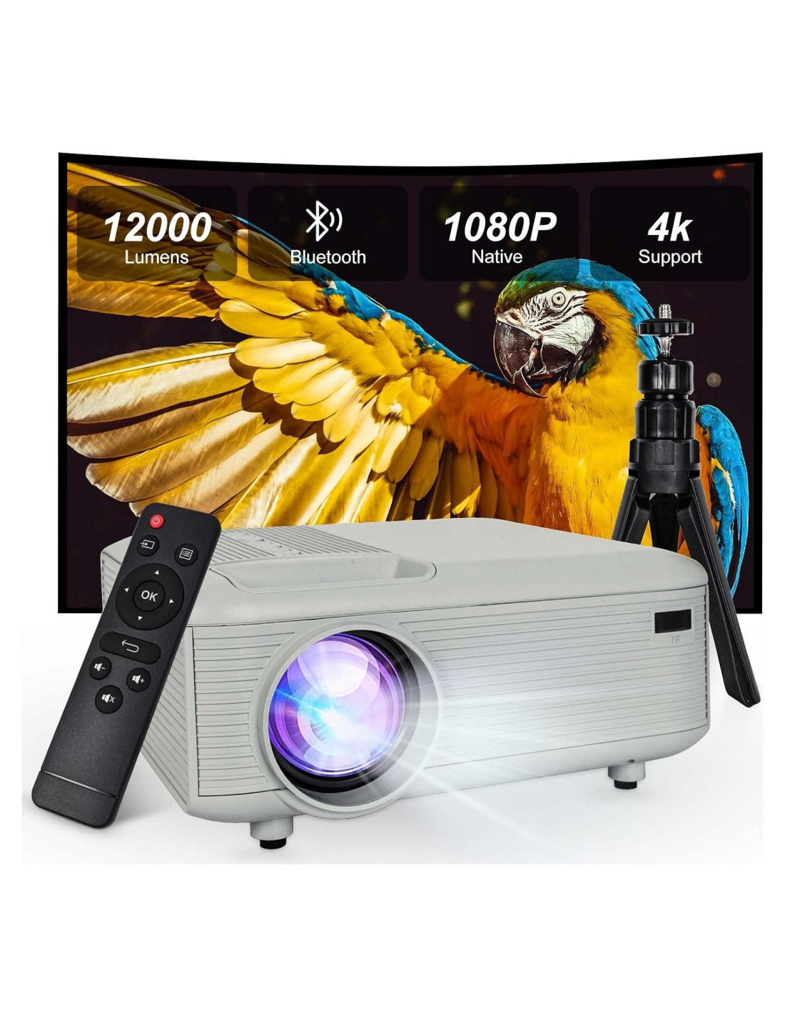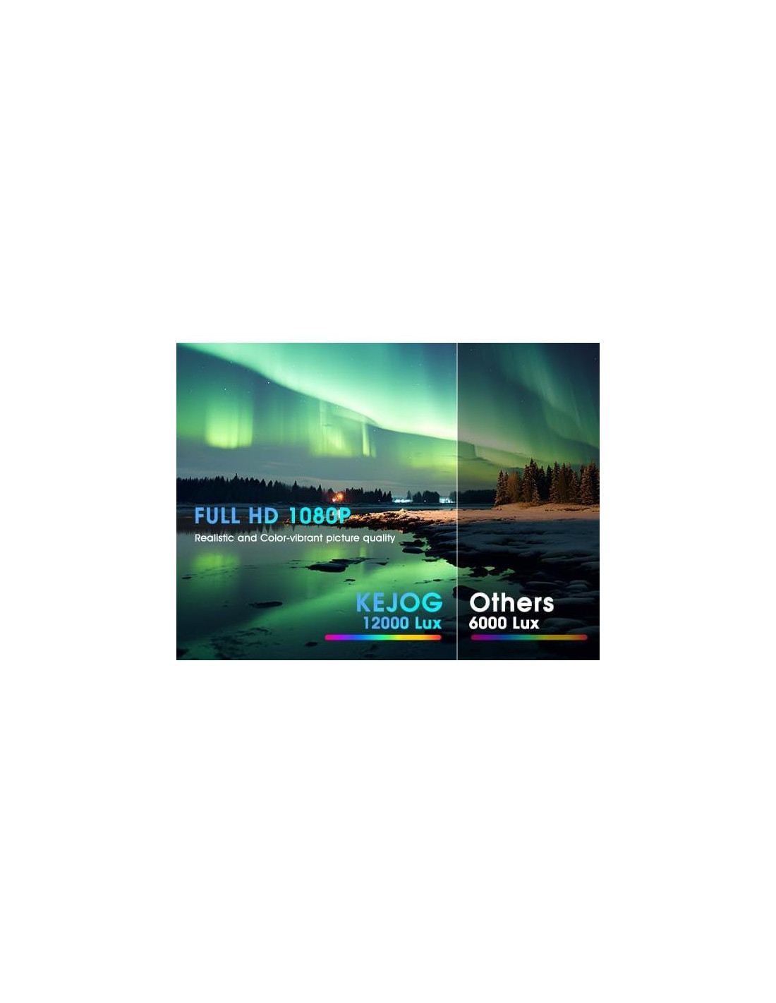 - [Full HD Nativo 1080P & 4K Soportado] : Disfruta de visuales cristalinos con nuestro proyector KEJOG de resolución nativa 1920x1080 que soporta reproducción fluida de contenido 4K, junto con un asombroso brillo de 12,000 lúmenes y una relación de contraste alta de 10,000:1, asegurando que imágenes de video delicadas, claras y coloridas de nivel cinematográfico puedan presentarse incluso en entornos exteriores. Este proyector 1080p es perfecto para crear un impresionante cine en casa o configuración de proyector en el dormitorio.