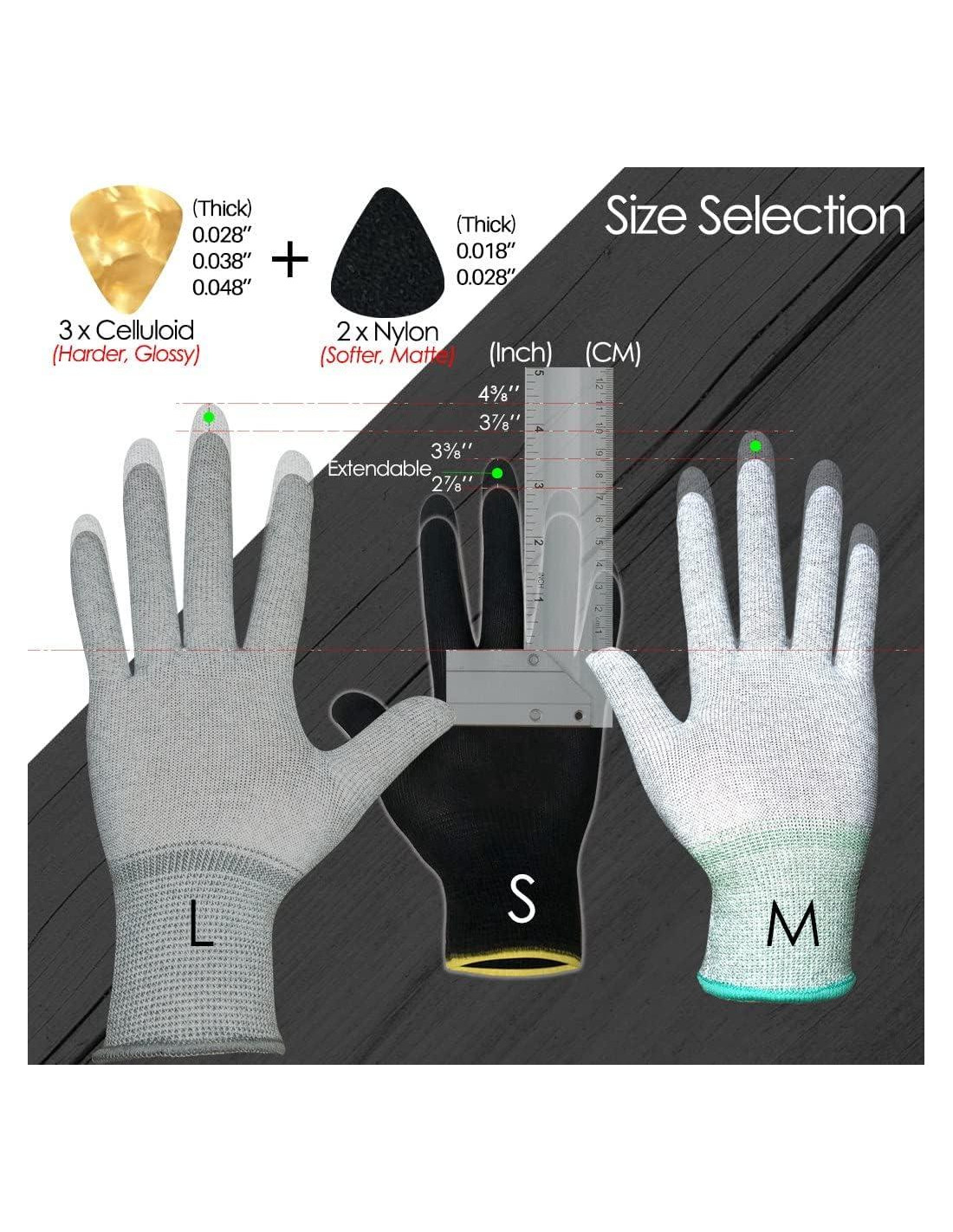 - PAQUETE DE ACCESORIOS DE GUITARRA: 1 par de guantes de guitarra y 5 púas, buenos para proteger los dedos y las yemas al tocar la guitarra
