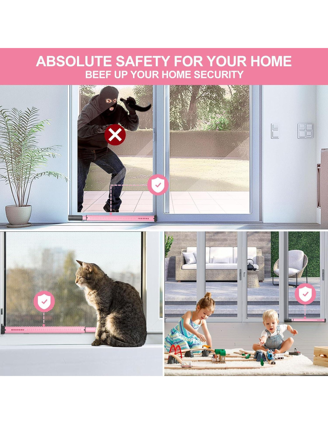 - Construcción Duradera: La barra de seguridad para puertas corredizas está hecha de acero de alta resistencia, proporcionando una robusta protección contra entradas forzadas. El tope para puertas corredizas se puede utilizar como barra de seguridad para puertas de patio o barra de seguridad para ventanas.