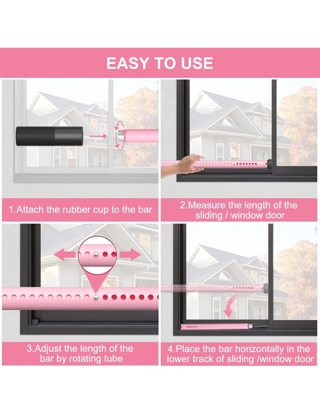 - Configuración Rápida: Ajusta la longitud sin esfuerzo girando la barra y colócala en la pista para una instalación sin complicaciones. La cerradura para puertas de patio corredizas está diseñada con una punta de goma extendida para un agarre más fuerte, evitando daños a ventanas o puertas.
