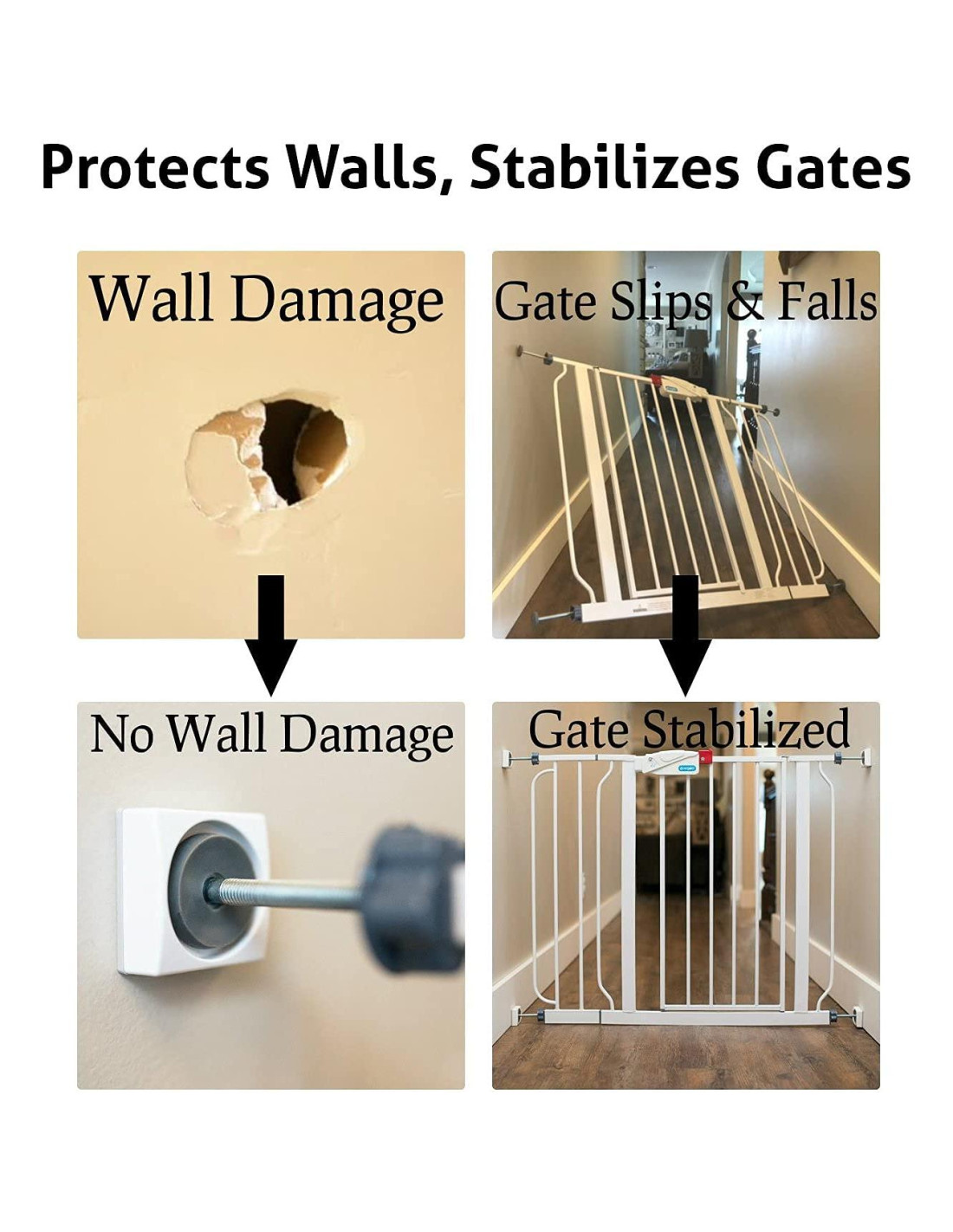 - Evita que las puertas se deslicen y se muevan y mantiene las paredes libres de daños - La protección de su hijo y mascota es su primera prioridad, ¡pero sus paredes también necesitan ser protegidas! Por eso, nuestro paquete de cuatro de Wall Nanny tiene un respaldo de goma suave que no solo amortigua el golpe de los tornillos montados a presión, sino que también evita que las puertas se deslicen, caigan y se muevan. Nuestros tazas son un accesorio de uso múltiple ya que funcionan para mascotas, barandillas y puertas para bebés.
