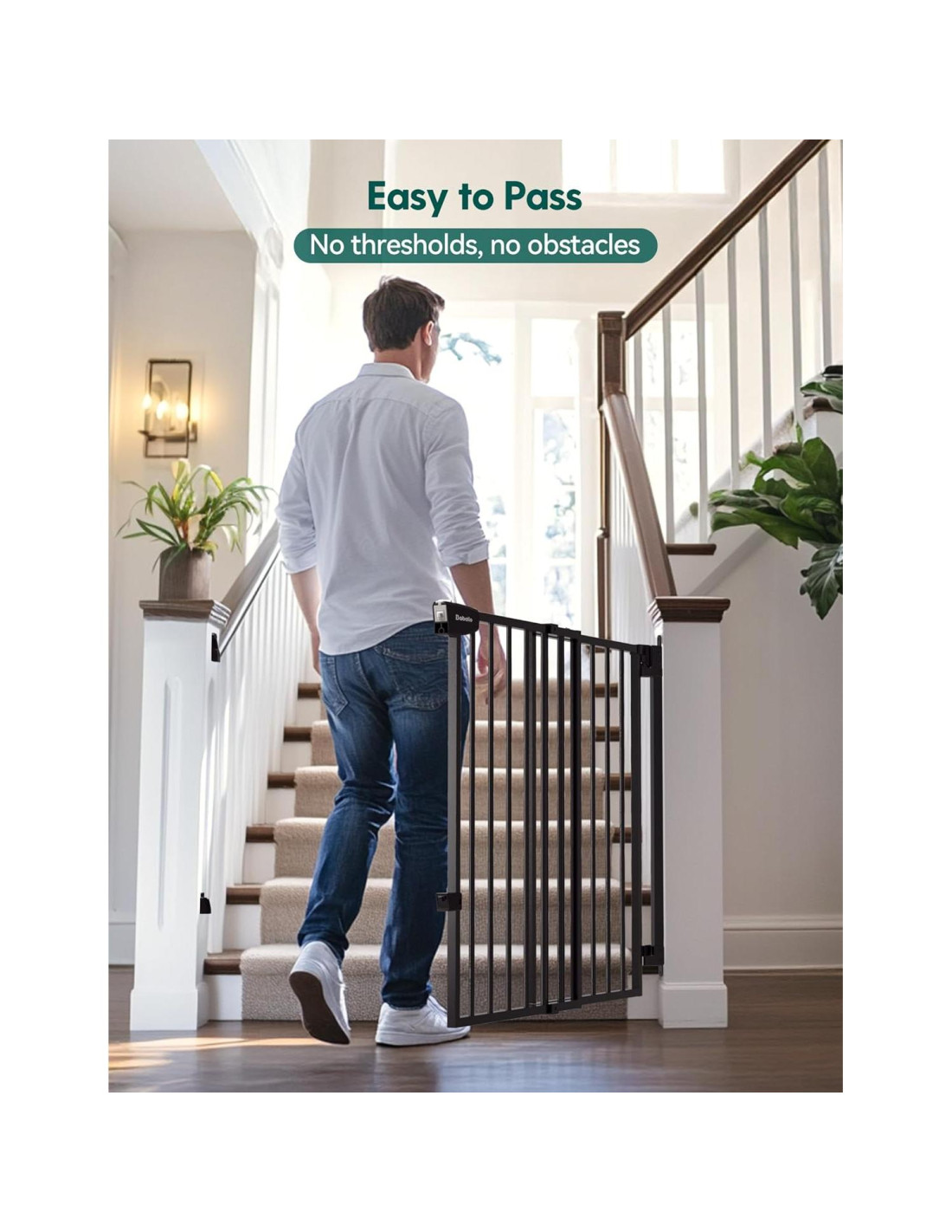 - Función de Cierre Automático: Equipado con un mecanismo de cierre automático, esta puerta para escaleras para niños o mascotas se cierra suavemente detrás de usted. La función de mantenerla abierta es una adición conveniente para momentos en que necesita que la puerta permanezca abierta, y su operación con una sola mano la hace fácil de usar incluso cuando tiene las manos ocupadas.