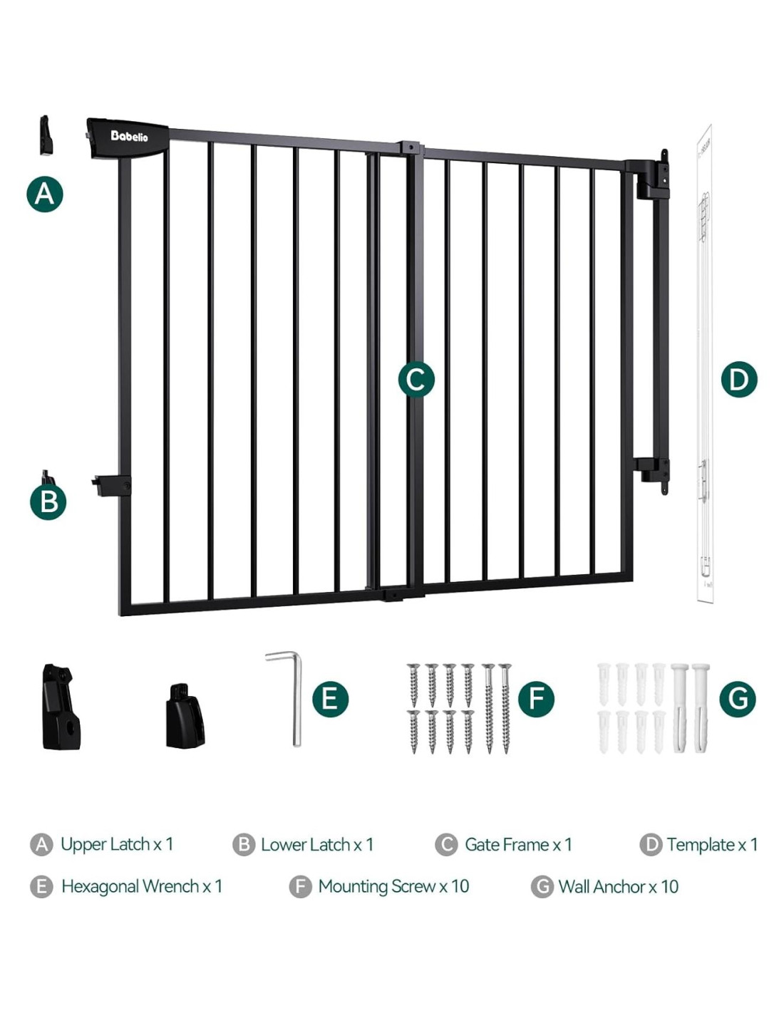 - Ajuste de Ancho Simple: La puerta para bebés de paso se extiende de 29.7 a 46.5 pulgadas (75.2 a 118.1 cm) de ancho, ofrece una adaptabilidad sin esfuerzo para ajustarse a sus diversos espacios interiores. Antes de la instalación, asegúrese de que las posiciones de perforación superior e inferior del soporte de la puerta estén en el mismo plano vertical.
