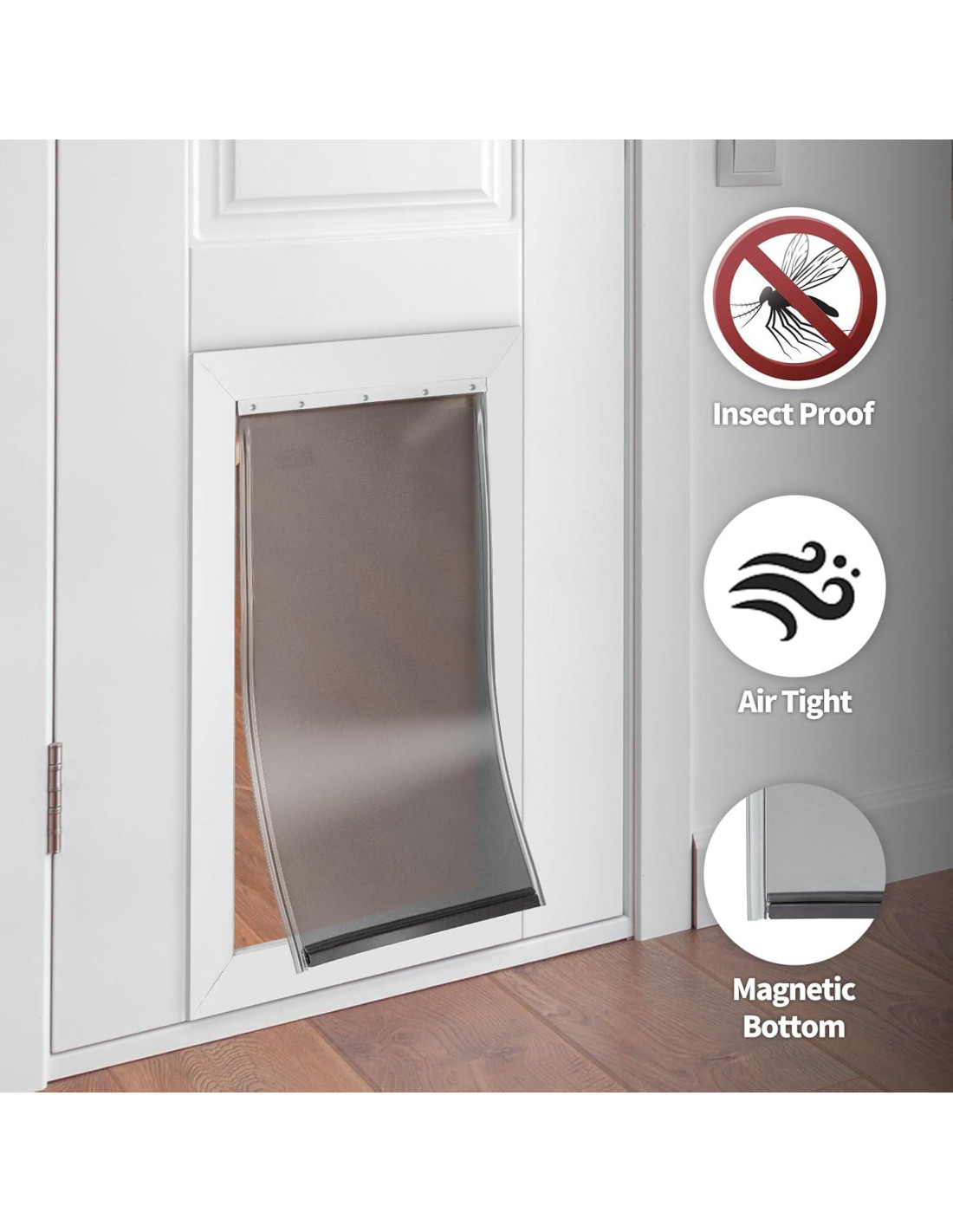 - [Diseñado para mascotas de tamaño grande] - La apertura del flap es 10 1/8 in x 16 7/8 in (25.7 cm x 42.9 cm). Hay 5 agujeros en la parte superior del flap para ajuste, perfectamente alineados y compatibles con su puerta para mascotas.