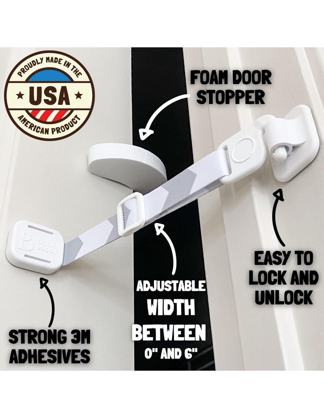 - HECHO EN EE. UU. - Los padres de mascotas de calidad merecen productos de calidad. Door Buddy es una empresa pequeña, inventada por padres y fabricada en EE. UU. A diferencia de otros cierres de puerta para perros y soportes para puertas de gatos más baratos, menos duraderos e importados, la correa ajustable para puerta de perros y la combinación de tope de puerta de gatos de Door Buddy son asequibles y están fabricadas con materiales de calidad superior. Prueba hoy nuestro cierre de puerta Door Buddy y el tope de puerta para gatos y descubre por ti mismo por qué miles de dueños de mascotas lo aman tanto.