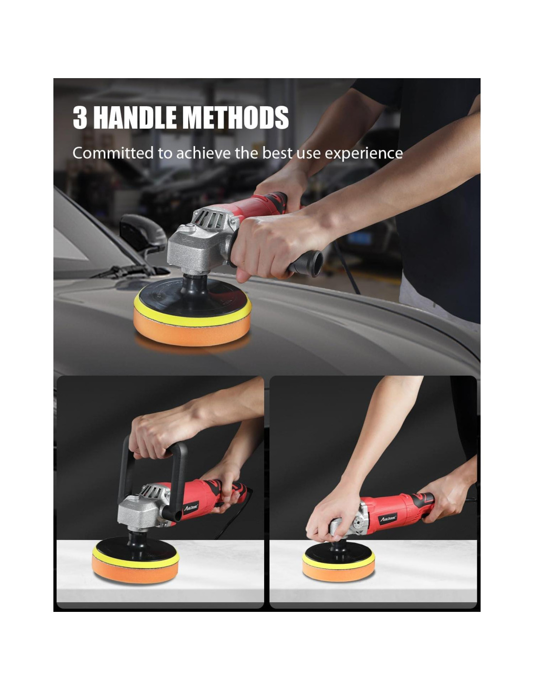 - Contenido del Paquete : 1*Pulidor Rotativo AVID POWER para detallado de coches, 10*papeis de lija, 4*almohadillas de pulido de 6 pulgadas, 1*bonete de pulido de lana de 7 pulgadas, 1*disco de respaldo de 6 pulgadas, 1*plato de respaldo de 7 pulgadas, 1*mango en D desmontable, 1*mango lateral, 1*llave hexagonal y un manual de usuario