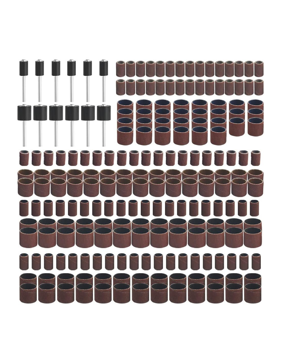 - Contenido del Paquete: 30* 5/8" (1.59 cm) 600 grano Mangas de Lijado, 30* 5/8" (1.59 cm) 320 grano Mangas de Lijado, 30* 5/8" (1.59 cm) 240 grano Mangas de Lijado, 30* 5/8" (1.59 cm) 180 grano Mangas de Lijado, 30* 3/8" (0.95 cm) 600 grano Mangas de Lijado, 30* 3/8" (0.95 cm) 320 grano Mangas de Lijado, 30* 3/8" (0.95 cm) 240 grano Mangas de Lijado, 30* 3/8" (0.95 cm) 180 grano Mangas de Lijado, y 12* 1/4" (0.64 cm) 1/2" (1.27 cm) Mandriles de Tambor.
