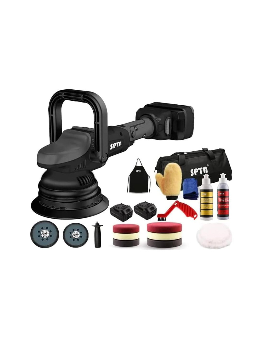 - PULIDORA INALÁMBRICA CON MOTOR SIN ESCOVAS - La Pulidora Inalámbrica SPTA te da la libertad de trabajar, motor sin escobas de alto rendimiento con bajo ruido optimiza la eficiencia de pulido. Pulidora de doble acción inalámbrica SPTA, viene con 2 baterías recargables, 6 almohadillas de esponja, 2 almohadillas de lana y 2 paños de microfibra, te permite terminar el trabajo en un solo paso. Perfecta para pulir y eliminar remolinos, rasguños y defectos de cualquier superficie de coche.