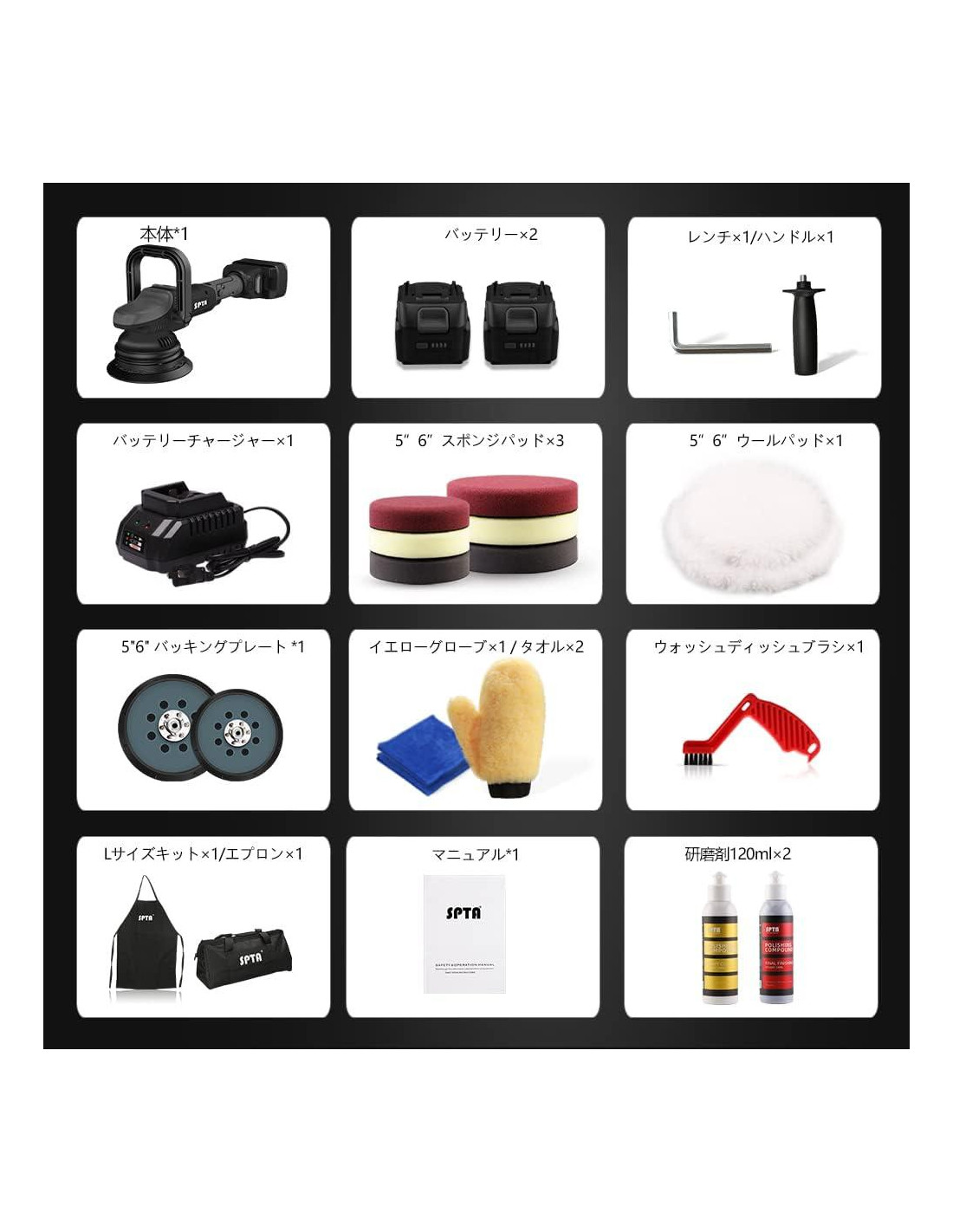 - ACCESORIOS PROFESIONALES Y EL QUE TIENE BUEN SERVICIO AL CLIENTE - El paquete incluye: 1x pulidora SPTA, 2 x batería de 18V 4.0Ah, 1 x cargador rápido de 2.0A, 6 x almohadillas de pulido de esponja, 2 x almohadilla de lana, 1 x llave hexagonal, 2 x toalla, 1 x guante de lavado, 1 x cepillo de limpieza de almohadillas; 1 x manual del usuario. Nuestro objetivo es proporcionar productos rentables a todos nuestros clientes, cada herramienta SPTA tiene 6 meses de garantía. Si no estás satisfecho con nuestro servicio, háznoslo saber y haremos todo lo posible para solucionarlo.