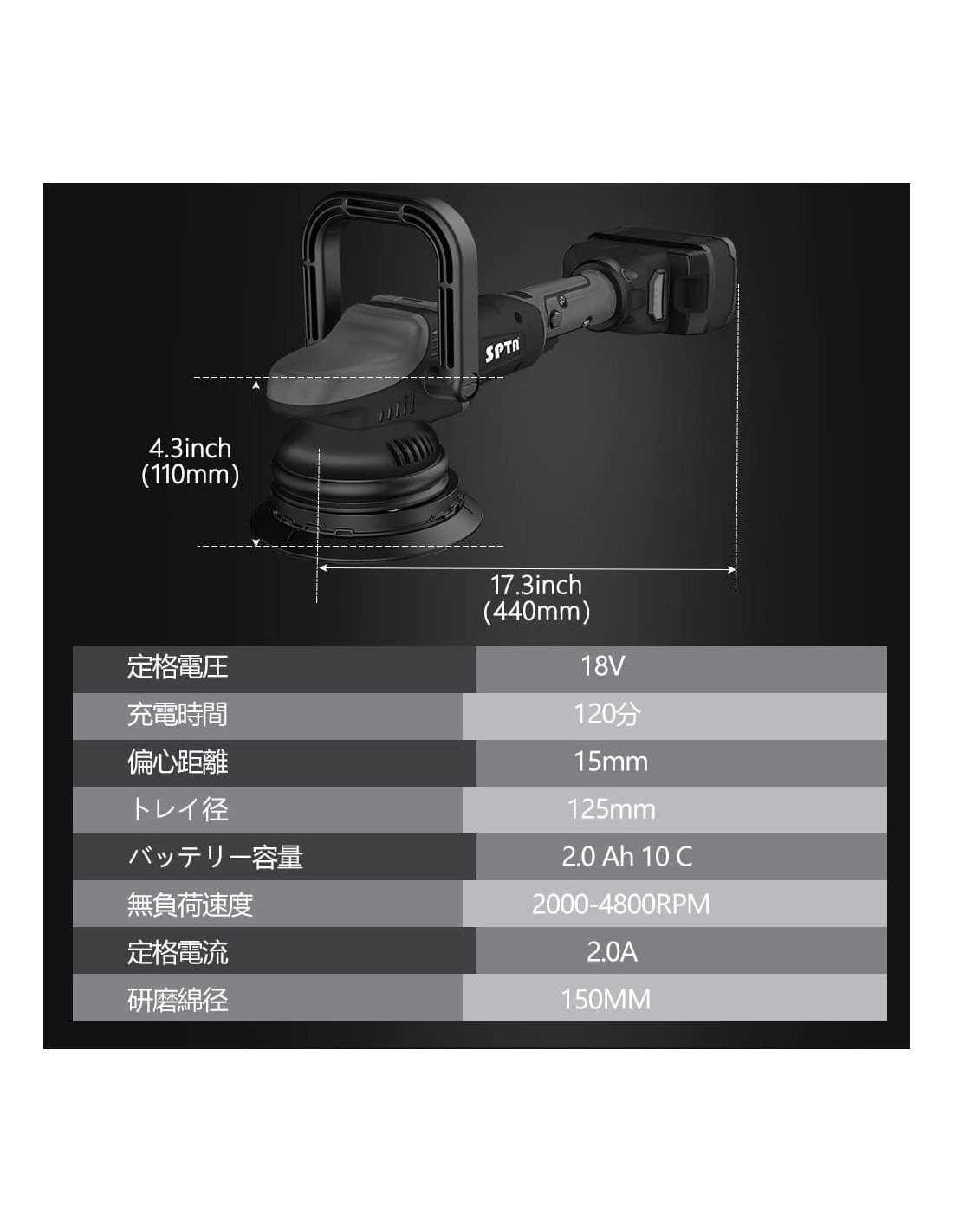 SPTA - Equipo Profesional en Amazon, que se dedica únicamente al desarrollo de herramientas. Nos comprometemos a utilizar herramientas de calidad para mejorar la calidad de vida. SPTA Pulidora de Coche Inalámbrica de 18V de 5 pulgadas con Órbita de 15mm.