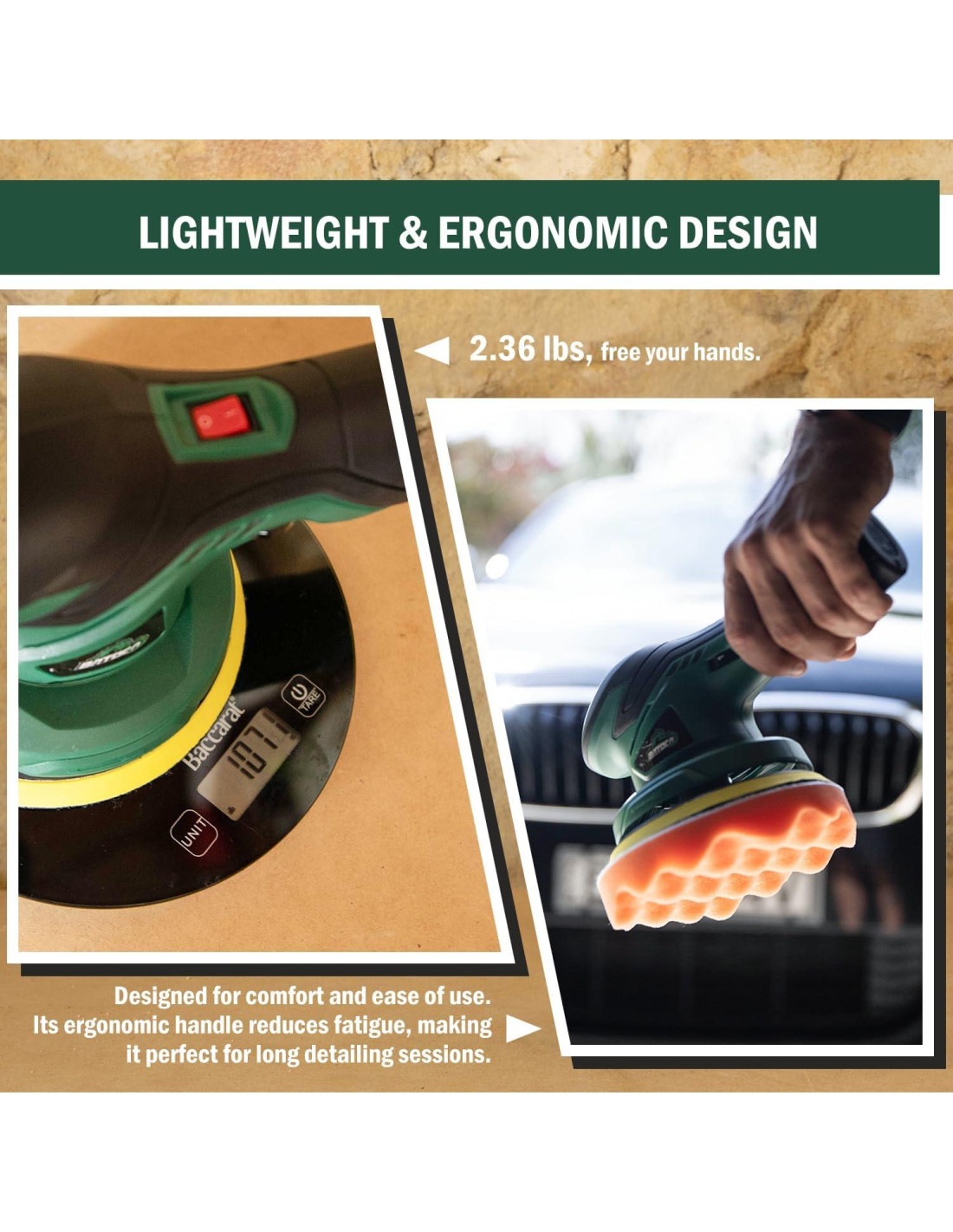 - LIGERO Y PORTÁTIL: El pulidor BATOCA para detallado de coches pesa solo 1.36 kilogramos. Fácil de llevar y almacenar. La órbita aleatoria de 5mm DA asegura un acabado uniforme, amigable para principiantes en todas las superficies pintadas.