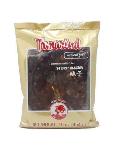 El tamarindo es una fruta en forma de vaina que se utiliza en la cocina del sudeste asiático y de la India. Este tamarindo húmedo está hecho de 100% tamarindo agrio fresco. No tiene semillas.