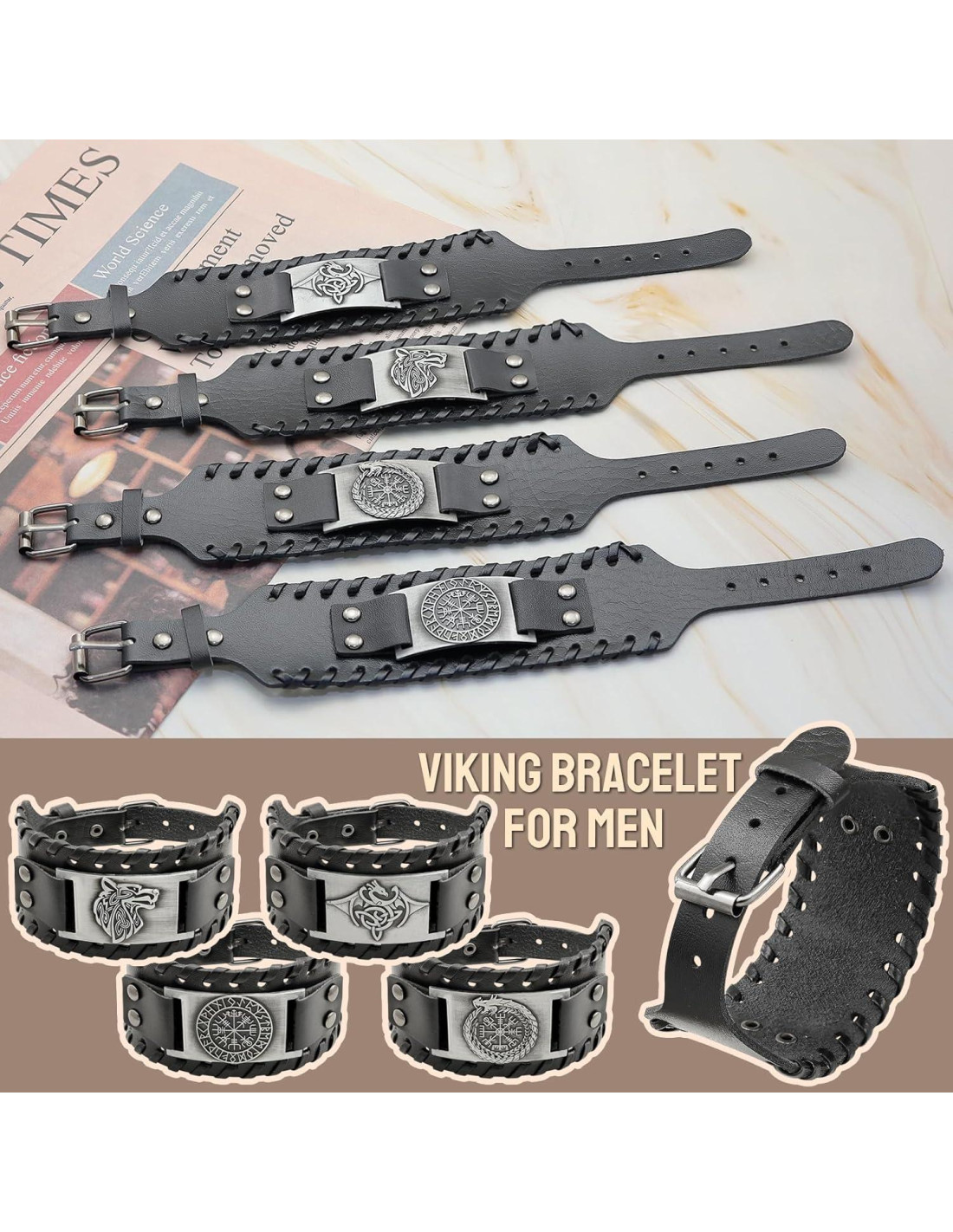 - 12 Pcs Accesorios vikingos: Incluyendo 4 pcs pulsera negra con compás rúnico grabado, diseño de dragón, lobo; 1 pc collar amuleto Martillo de Thor; 1 pc collar compás de Odín; 6 pcs joyería pagana celta de amuletos nórdicos para barba