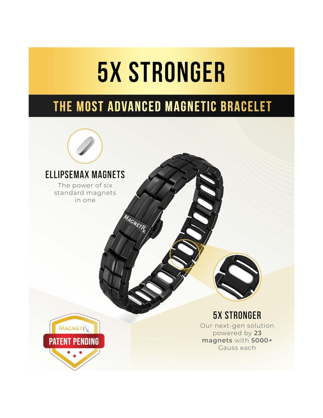 - Poder Magnético Inigualable: Experimenta la fuerza superior de nuestra pulsera magnética de titanio EllipseMAX con patente pendiente para hombres, equipada con imanes de 5,000 Gauss que ofrecen una fuerza de siguiente nivel para apoyar tu bienestar y rendimiento diario.