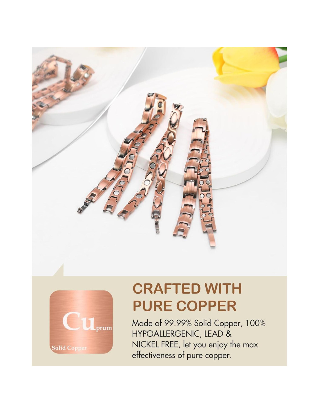 - 99.99% COBRE SÓLIDO: Fabricada con cobre 99.99% puro, esta pulsera magnética para mujeres hipoalergénica, libre de plomo y níquel asegura máxima comodidad y durabilidad. Se utilizan técnicas de primera para evitar la oxidación y los arañazos, asegurando calidad duradera.