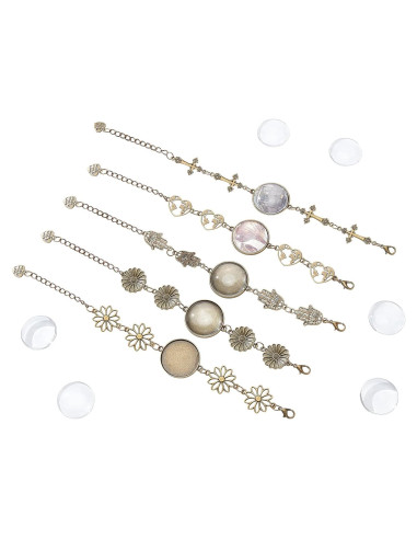 - Tamaño Ajustable: Las pulseras de cabochón miden aproximadamente 15.5-18.7cm (6.1"-7.4") de largo, la cadena de extensión mide 8.7cm (3.4"). El diámetro del cabochón transparente es de 25mm (1 pulgada). Estas pulseras en blanco son adecuadas para la muñeca de la mayoría de las personas.