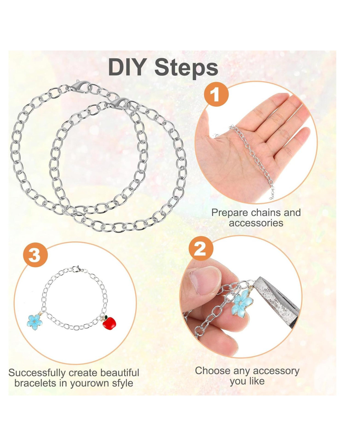 - Conjunto de Valor: Recibirás 20 pcs cadenas de pulsera con encanto, cantidad suficiente para satisfacer tus necesidades de uso y reemplazo, también puedes compartir con familiares y amigos
