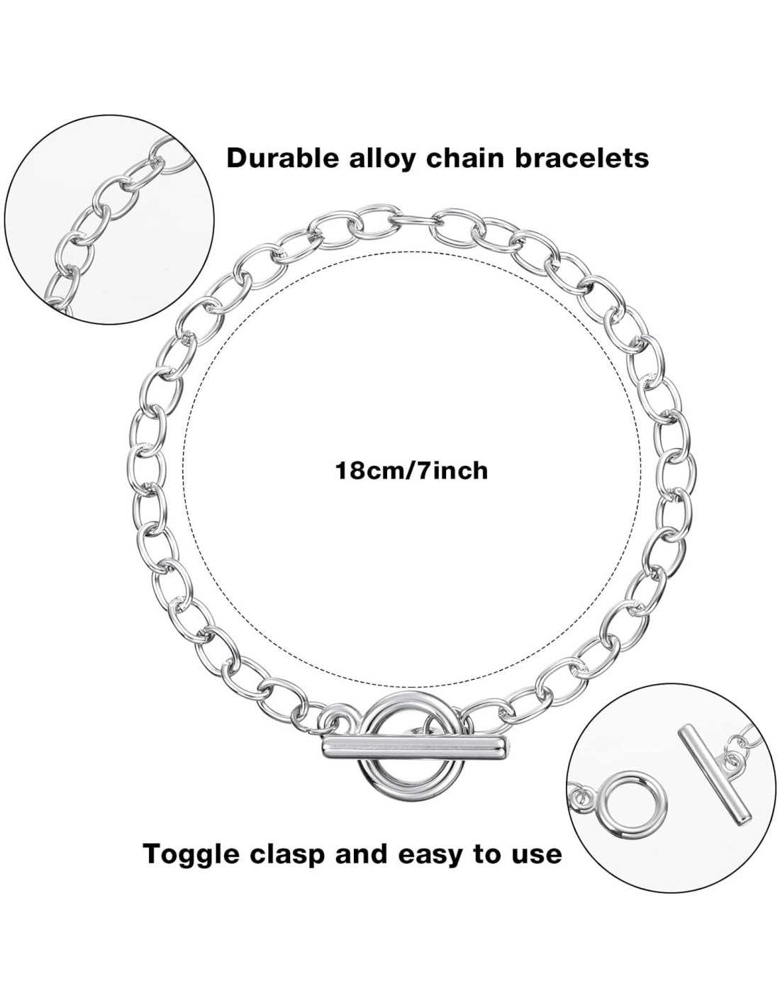 - Satisface tus necesidades de decoración: recibirás 80 piezas de cadenas de pulsera de encanto en color plata, cantidad suficiente para usar, intercambiar y compartir con otros, práctico para diferentes situaciones, estados de ánimo y sentimientos, ideal para tus diversos proyectos de bricolaje