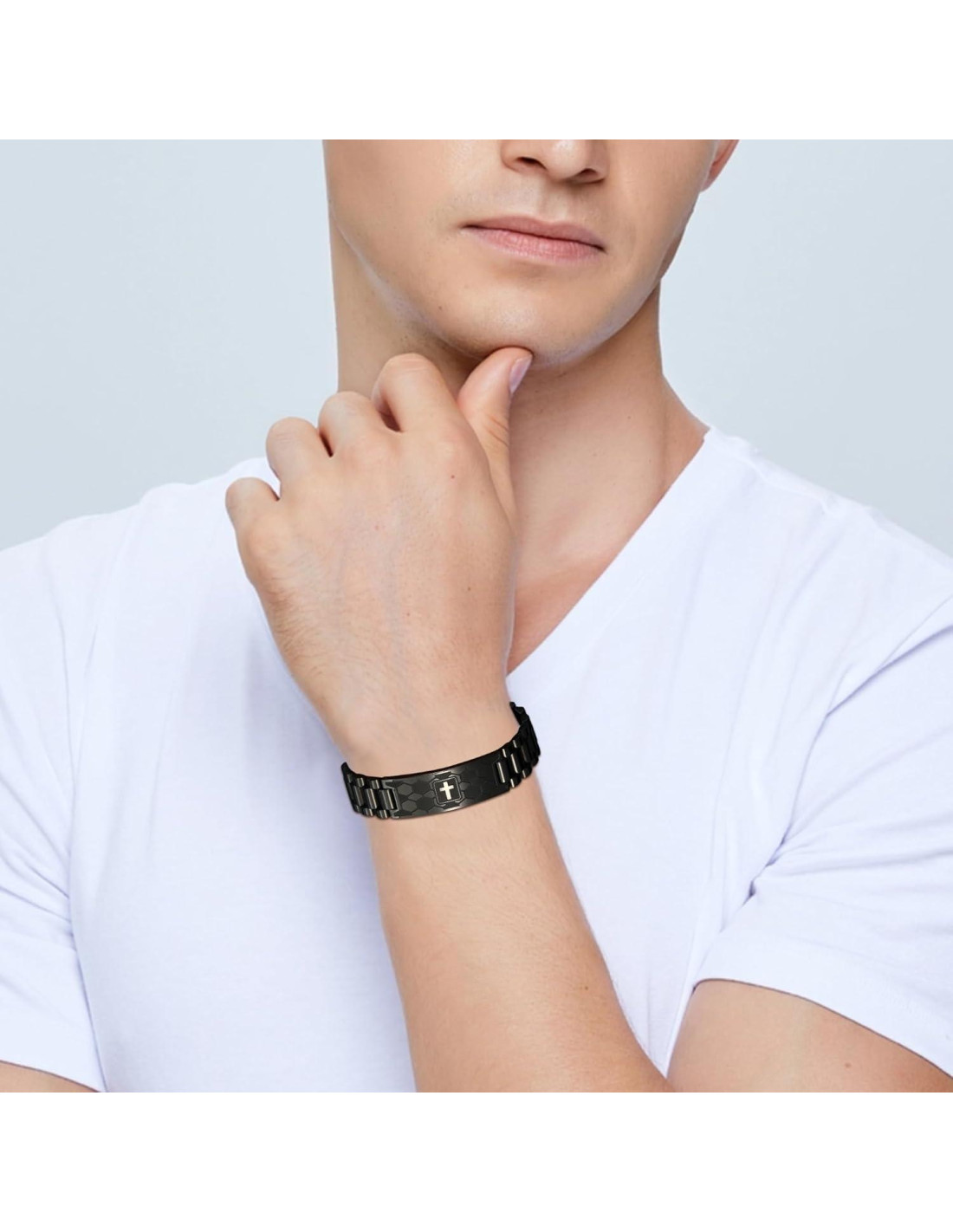 - [MATERIALES DE ALTA CALIDAD] La pulsera para hombres está hecha de acero inoxidable 316L de alta calidad, que está estrictamente pulido y no dañará tu piel, no tóxico, inofensivo, no irritante y no alérgico para el cuerpo humano. La pulsera es altamente resistente a la corrosión, impermeable y robusta y no pierde color fácilmente, se puede usar y mantener durante mucho tiempo.