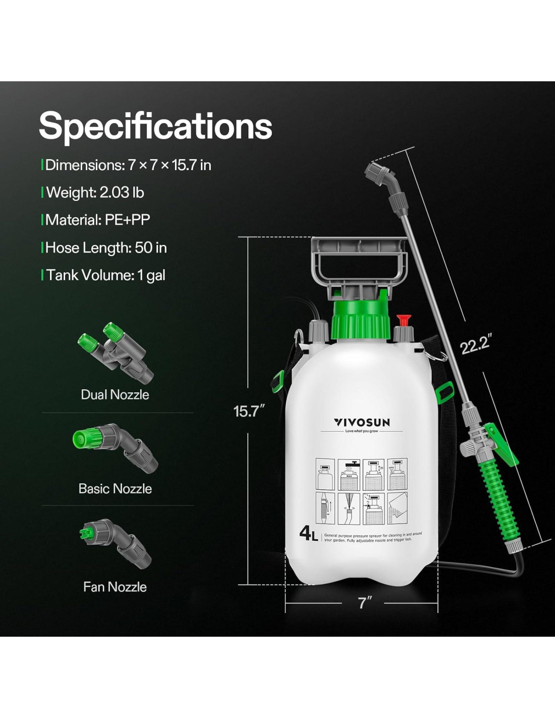 - Portátil y Conveniente: Cada pulverizador viene con una correa de hombro resistente y el mango de agarre cómodo tiene una válvula de cierre incorporada, por lo que puedes llevar cómodamente el pulverizador sobre tu hombro mientras mantienes libre otra mano; La varilla de pulverización de 56.4 cm de largo y la manguera de 127 cm ofrecen un mejor alcance práctico y te ayudan a pulverizar plantas de difícil acceso