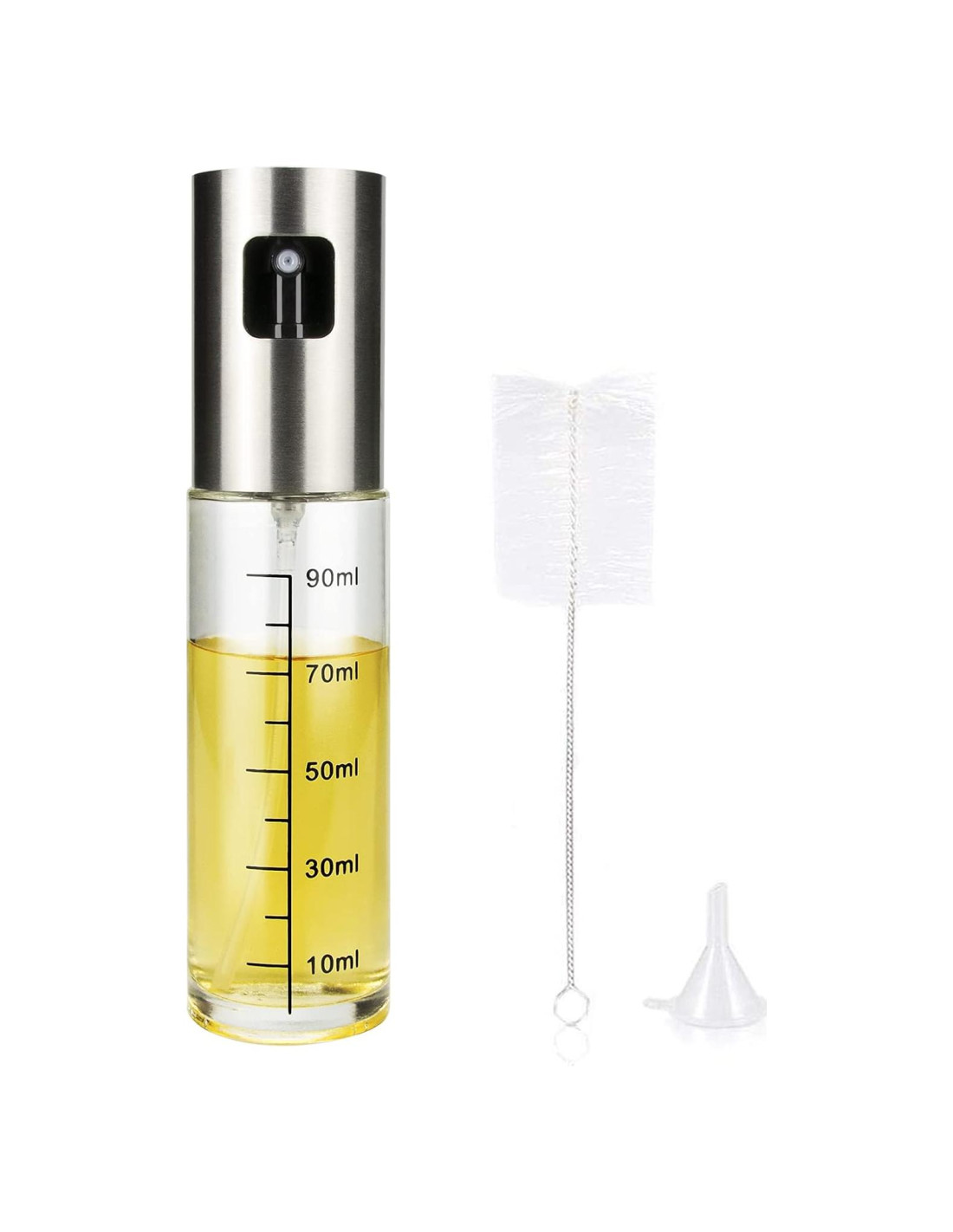 - Paquete de Valor - Botella de Spray de Aceite de Oliva + Mini Embudo + Cepillo de Limpieza - El cepillo te ayuda a limpiar fácilmente el pulverizador de aceite de oliva, y el pequeño embudo adjunto te permite llenarlo con aceite más fácilmente.