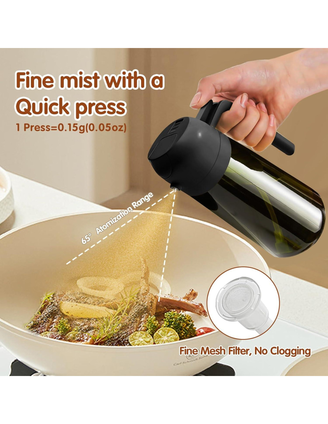 - [Diseño de doble función y multipropósito] : La botella pulverizadora de aceite para cocinar ofrece la conveniencia de rociar y verter aceite, adecuada para una amplia gama de procesos de preparación de alimentos como aderezo para ensaladas, plancha, asado, parrilla.
