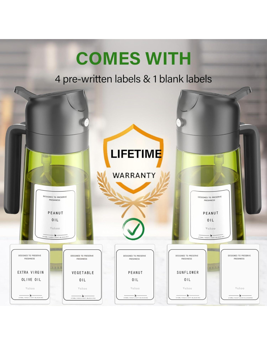 - Uso amplio: Viene con 4 etiquetas preimpresas + 1 etiqueta en blanco; Esta herramienta de cocina versátil es perfecta para freír, ensaladas, barbacoas, freír al aire y más; Atomiza el aceite de cocina para una aplicación precisa, haciéndolo higiénico, conveniente y eficiente en aceite