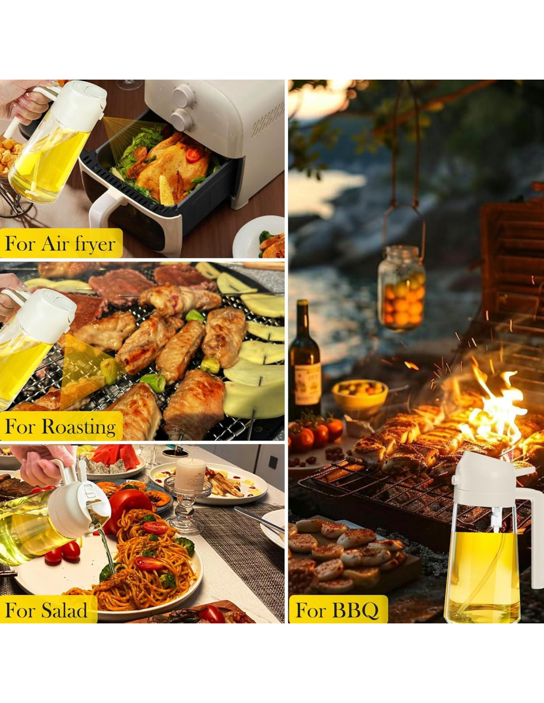 - [Dispensador y Pulverizador de Aceite de Vidrio 2 en 1] El pulverizador de aceite de oliva de diseño nuevo se puede usar tanto para rociar como para verter aceite. Es muy adecuado para sazonar, hornear, freír, asar, parrillar y otras preparaciones de alimentos.