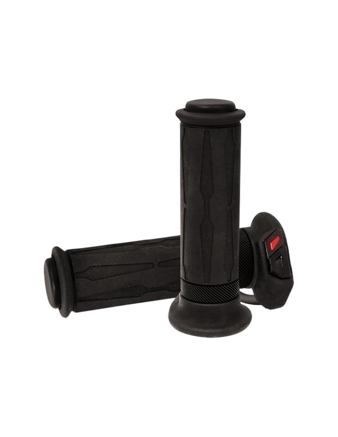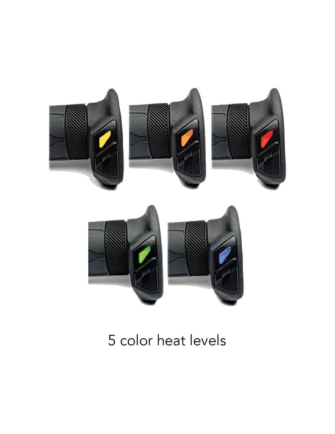 Nuestros puños calefactables Apollo están diseñados con un interruptor de pulgar ajustable integrado, que permite que se adapten fácilmente a la mayoría de las motocicletas en el mercado. El interruptor de pulgar integrado brinda la oportunidad al conductor de ajustar el nivel de temperatura sin quitar las manos del manillar para un viaje más seguro. Su amplio rango de ajuste de temperatura mantendrá al conductor cómodo en condiciones de frío. La nueva pantalla LED de 5 colores mejorará la apariencia visual de los puños calefactables y permitirá al conductor saber rápidamente en qué nivel de calor están configurados. Otra gran característica es la protección de batería de bajo voltaje. Este sistema detectará si el voltaje de la batería es demasiado bajo y apagará automáticamente los puños calefactables para asegurarse de que el conductor tenga suficiente energía para arrancar el motor.