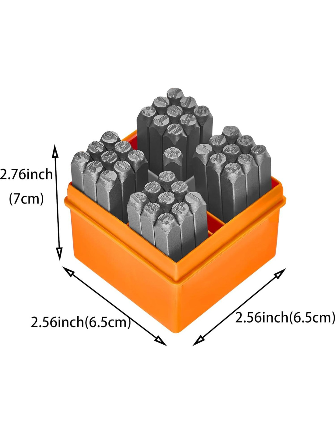 - El juego incluye 27 letras (de A a Z) más el símbolo "&" así como 9 punzones numéricos (0 - 8) - usar el 6 como un 9