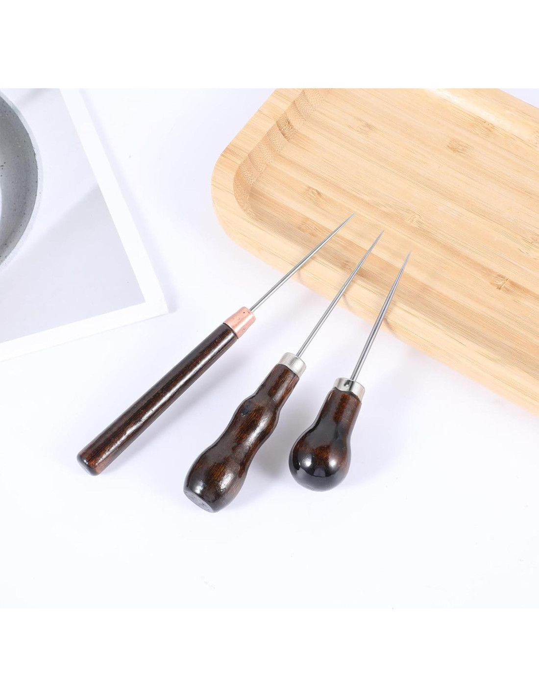 - [Paquete de Valor] Este conjunto de punzones de costura incluye 3 punzones con mangos de madera, proporcionando una solución integral para todas sus necesidades de costura y manualidades. El conjunto incluye un punzón de marcado, un punzón de cuero y un punzón de costura, que son perfectos para coser cuero, proyectos de tela y manualidades DIY.