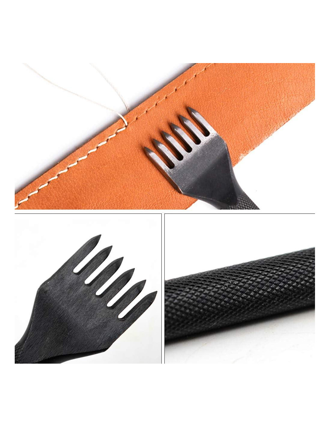 - Fácil de Operar: Diseño mejorado, el punzón de costura de cuero está diseñado con muescas en el costado, lo que puede aumentar la fricción, prevenir deslizamientos y sostener cómodamente, haciendo que su proceso de estampado sea más seguro y conveniente.