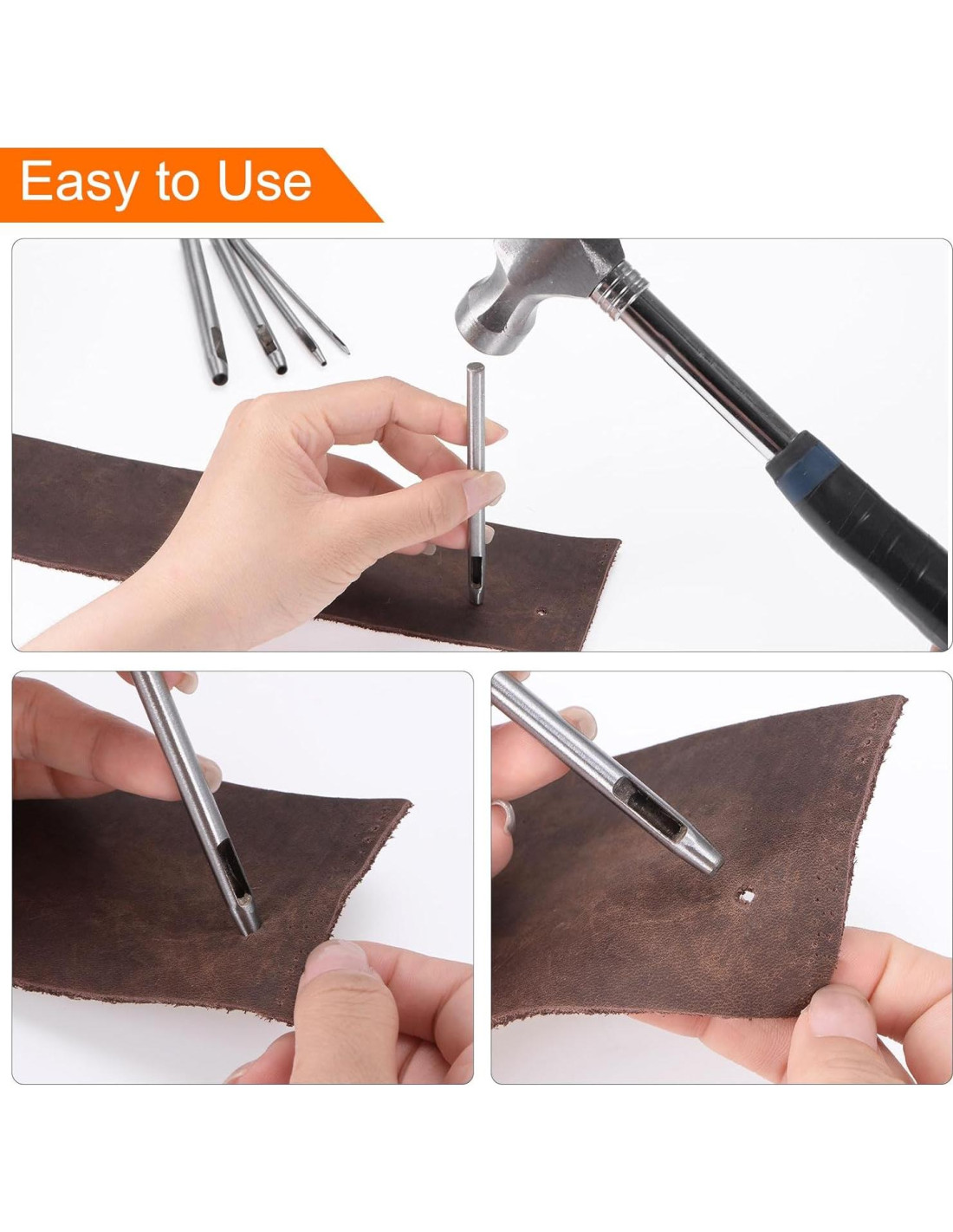 - Material - El punzón para cuero está hecho de acero al carbono, tiene una larga vida útil de afilado y durabilidad. superficie con pulido completo, anti-óxido y anti-corrosión.
