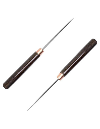 - [Conjunto de Herramientas de Punzón] Este paquete incluye 2 pcs de punzones, cada uno con una longitud de aguja de 6.99 cm (2.75 pulgadas) y una longitud de mango de 9.53 cm (3.75 pulgadas) para una funcionalidad óptima. Fabricado con madera de alta calidad y material de acero inoxidable, el punzón está diseñado para un uso prolongado.