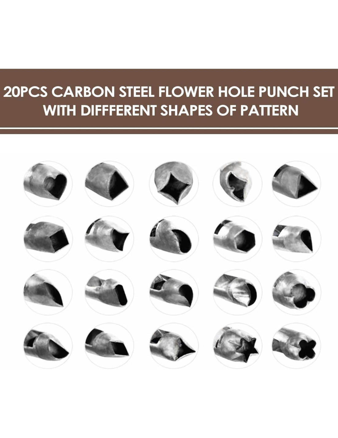 - 20 Piezas: La herramienta de perforación de cuero tiene 20 formas diferentes de perforación, incluyendo forma de corazón, forma de luna, forma de estrella, triángulo, etc., para ayudarte a crear una cartera, cinturón o bolso personalizado único.