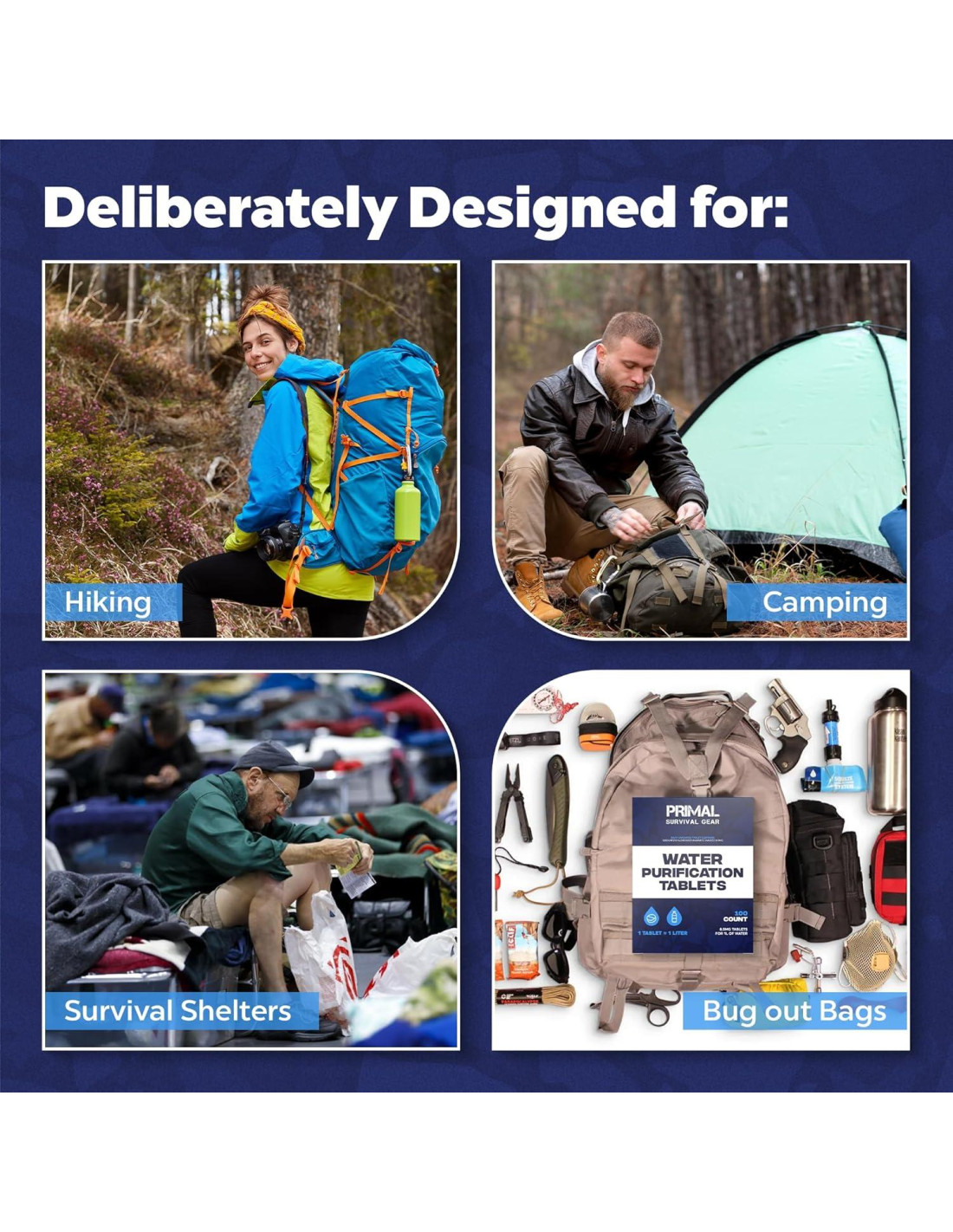 - Compactas y Listas para Viajar: Confiables para senderismo, camping, casas rodantes, mochileros, refugios de supervivencia, preparación y mochilas de emergencia. Nuestras tabletas ligeras y compactas son fáciles de empacar y llevar. Simplemente déjalas caer en el agua, no se necesita equipo de filtración.