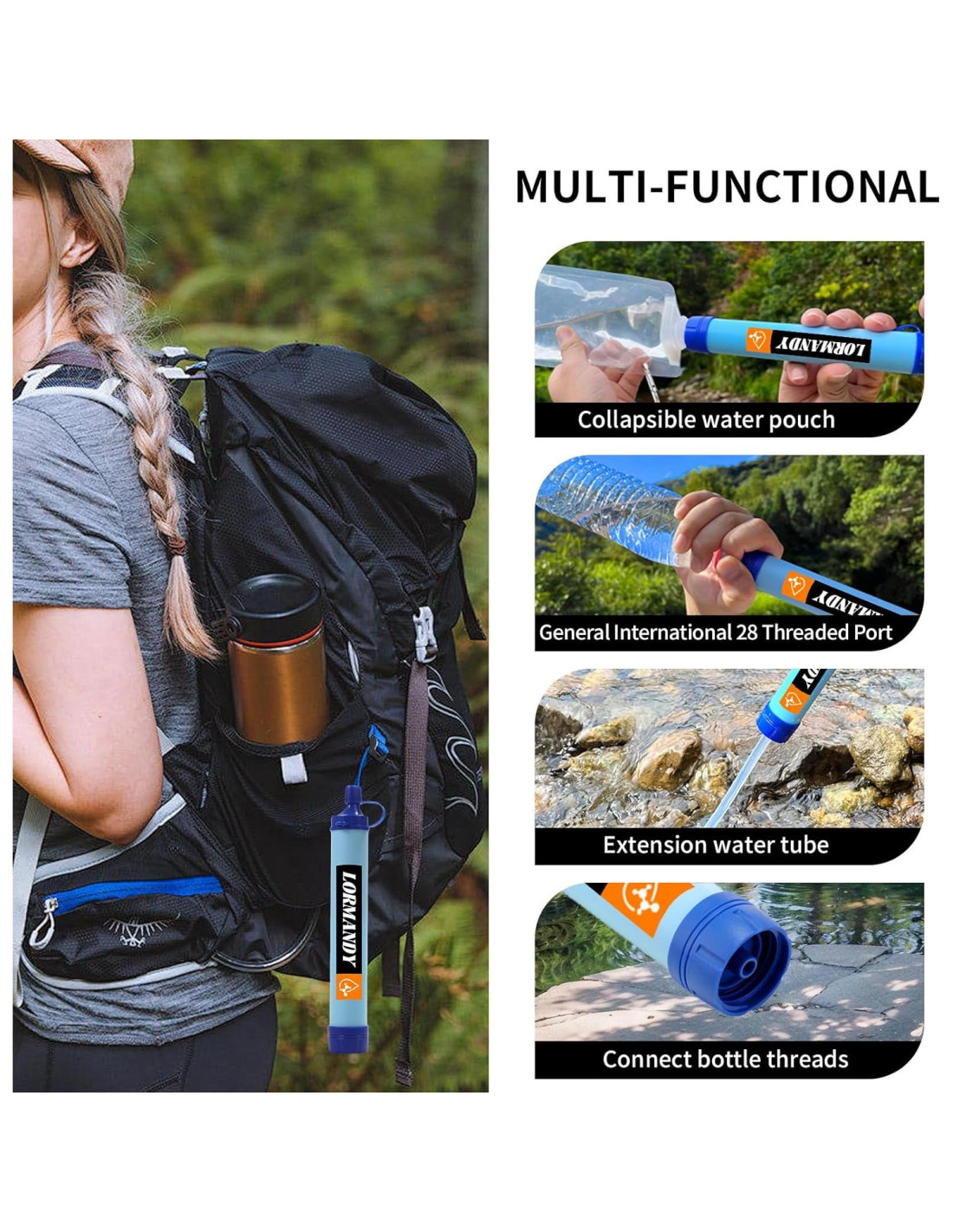 - Amplia Aplicación No se necesitan otros accesorios, el filtro de agua se puede conectar directamente a una bolsa de bebida, botella o fuente de agua al aire libre, proporcionando agua potable segura para ti y las aventuras al aire libre de tu familia.