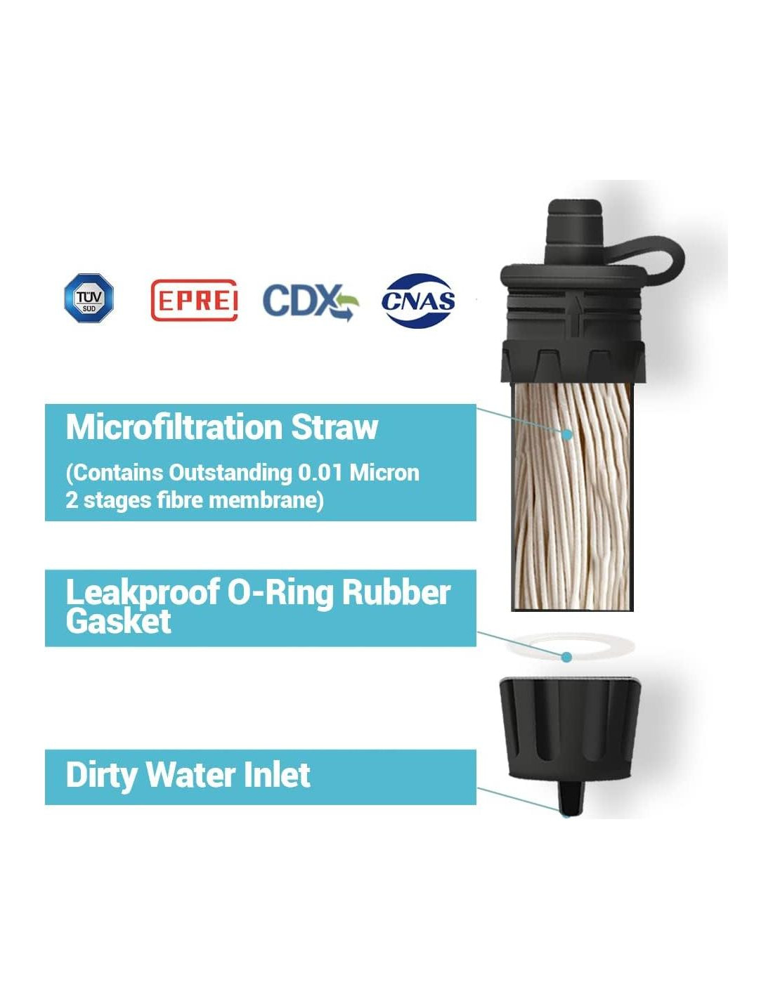 - Filtración de primera categoría Membrana de fibra de 0.01 micrones en 2 etapas y filtro en línea de algodón pp de grado médico. Perfecto para aventuras al aire libre, mochileo, camping, senderismo, viajes.