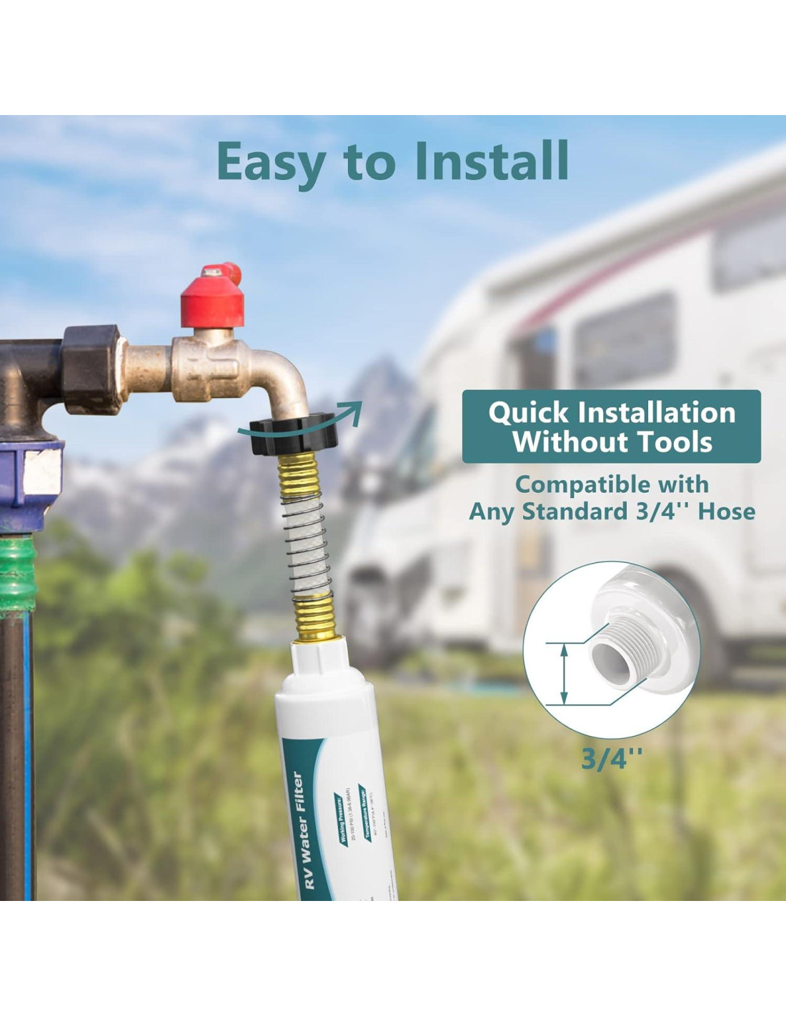 - Amplia Aplicación: El filtro de agua en línea es compacto y portátil, ideal para RVs, barcos, campistas, remolques, casas rodantes, jardinería, mascotas, etc.