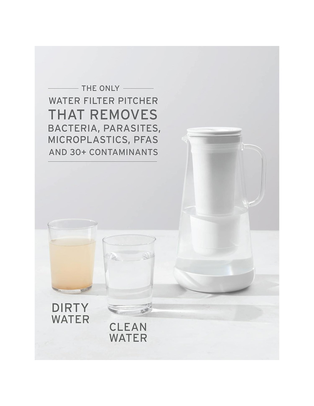 - Filtración que realmente hace cosas. La única jarra filtradora de agua que elimina bacterias y parásitos, además de microplásticos.