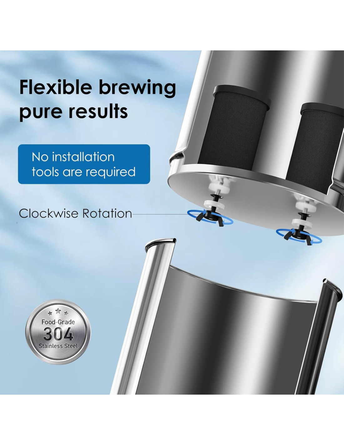 - Nivel de Agua Visible - Un purificador de agua de acero inoxidable de encimera completamente nuevo con un diseño transparente único que no se encuentra en otros productos del mercado. El diseño de la ventana visual permite un fácil monitoreo de la escala del nivel de agua, lo que permite un reabastecimiento oportuno de agua para asegurar un suministro continuo del agua más pura.