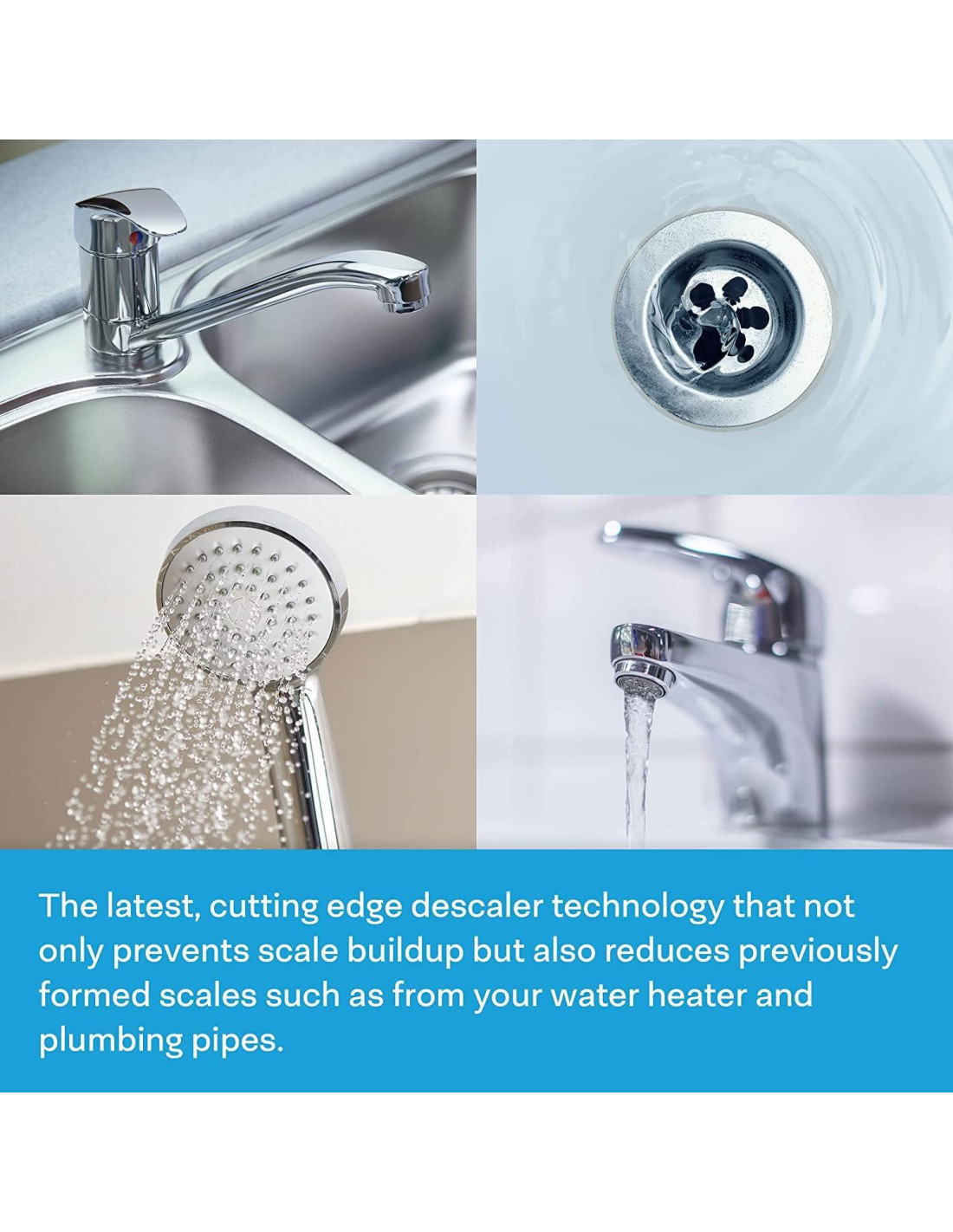 - DESINCRUSTANTE SIN SAL: La tecnología desincrustante de vanguardia fabricada en Alemania crea un ablandador de agua sin sal para tu RV que es fácil de mantener, mejor para el medio ambiente y no te deja sintiéndote resbaladizo y pegajoso después de ducharte. No se requiere sal ni electricidad para obtener protección anti-incrustante que no solo previene la acumulación de agua dura, sino que también reduce la escala previamente formada en las tuberías de plomería.