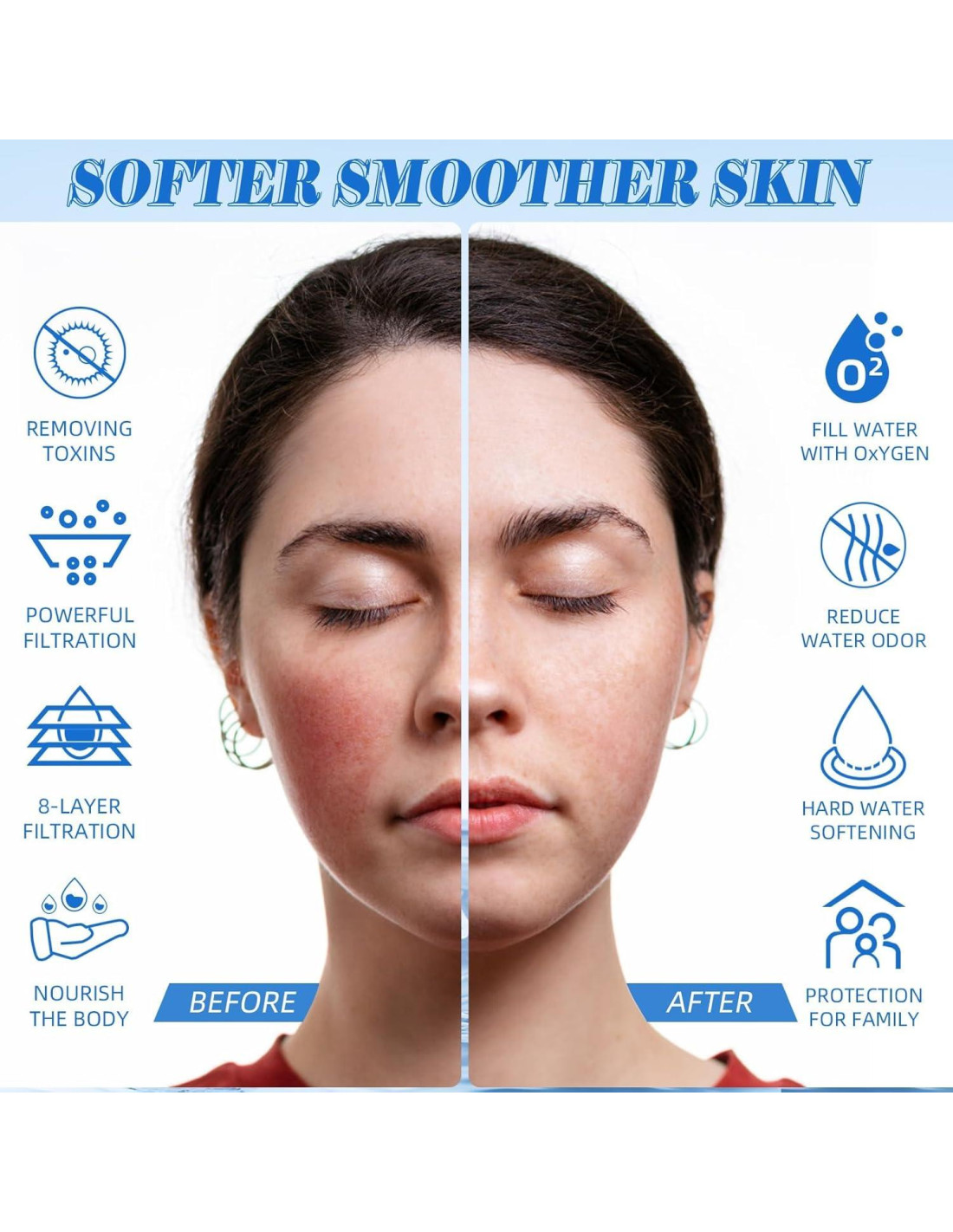 - MEJORA LA SALUD DE LA PIEL Y EL CABELLO: Filtrar productos químicos dañinos y metales pesados puede ayudar a mejorar las condiciones de la piel, hacer que el cabello sea más suave y brillante, y decir adiós a las impurezas, perfecto para personas que sufren de eczema, erupciones por pañales o piel seca y con picazón.